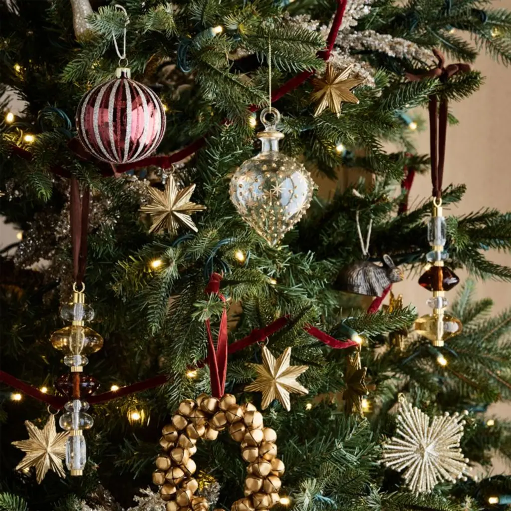 Bring on the sparkle with our starburst Christmas tree ornaments. Coated with super-shiny gold glitter, the 12 Christmas tree ornaments radiates glittering rays from their dimensional star-shaped cores. We love them twinkling on the tree or sparkling sunlight in a window.