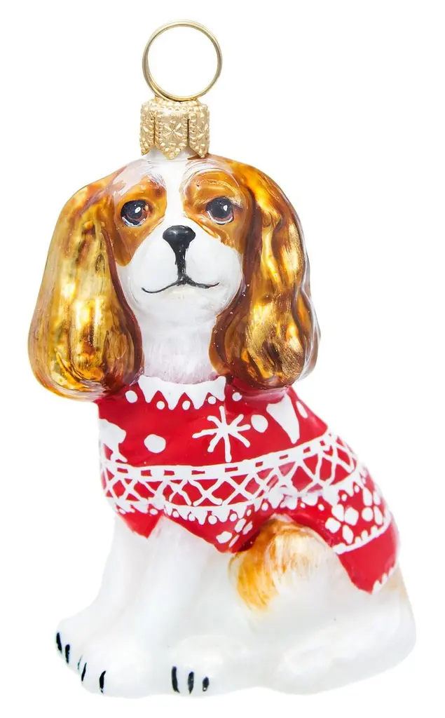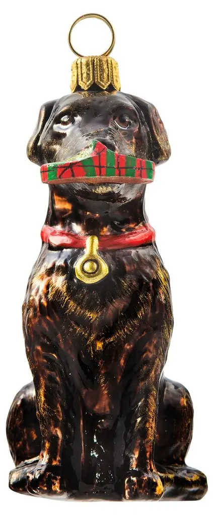 A charming addition to the tree, this goldendoodle ornament is handcrafted of mouth-blown glass and hand-painted by artisans in Poland.