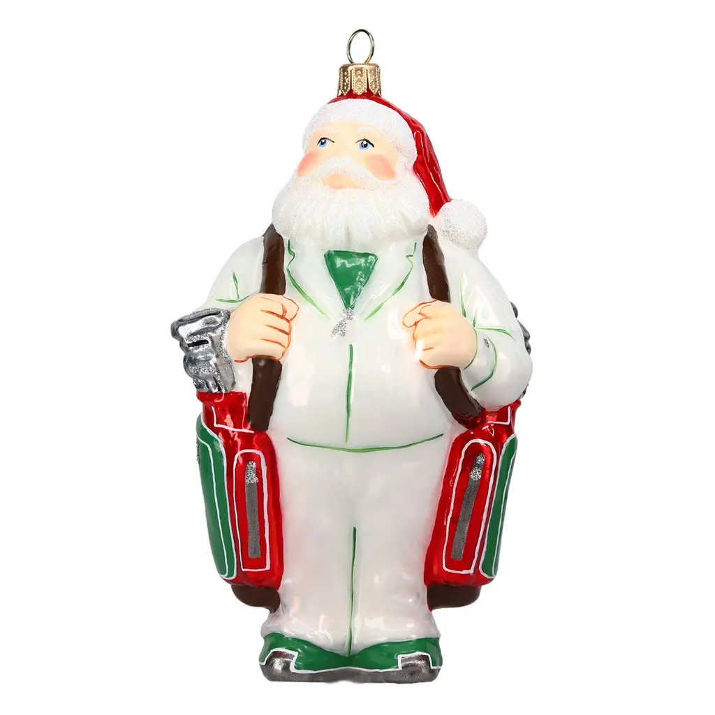 Celebrate the season with a sporty twist—this Santa ornament makes a great gift for golf lovers and holiday collectors alike.