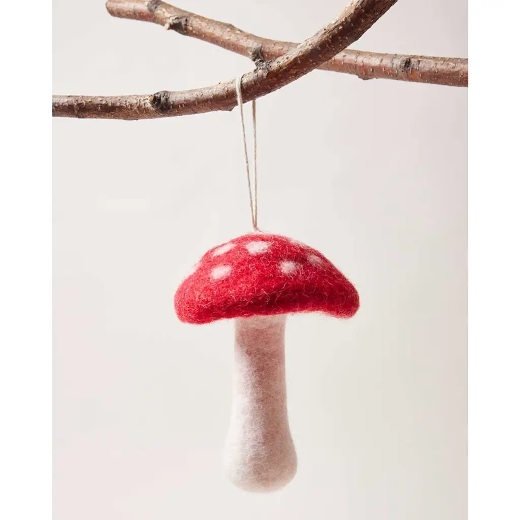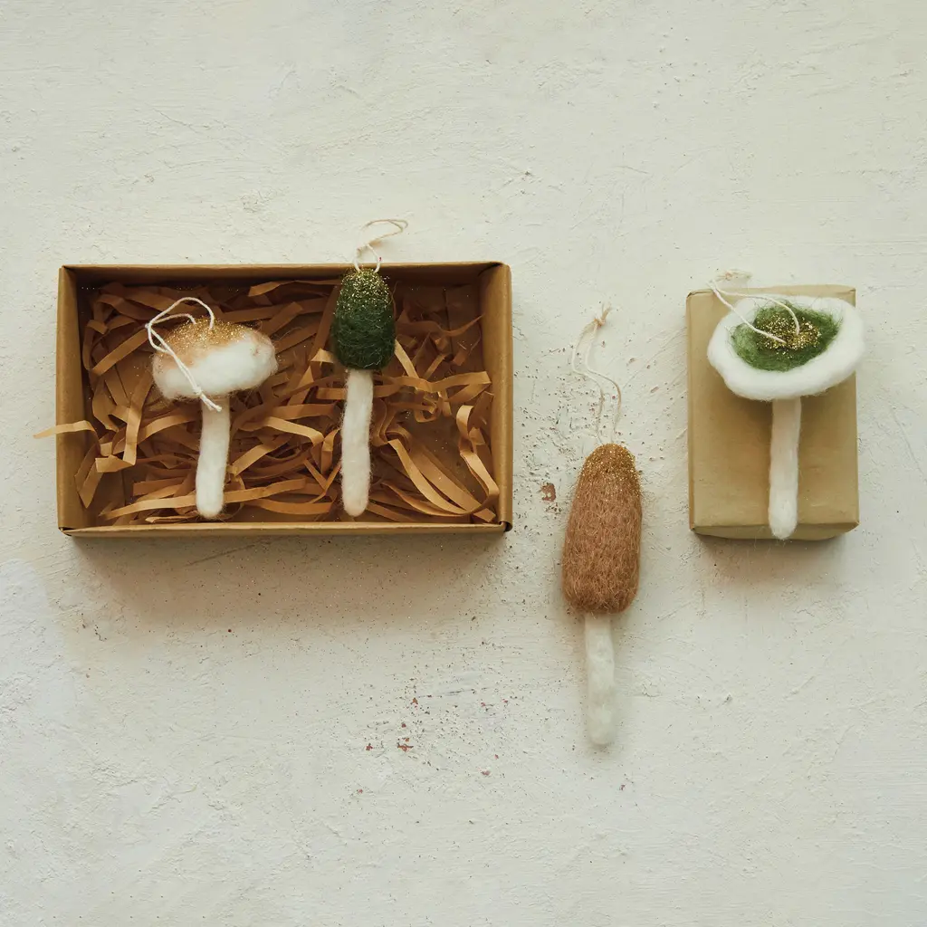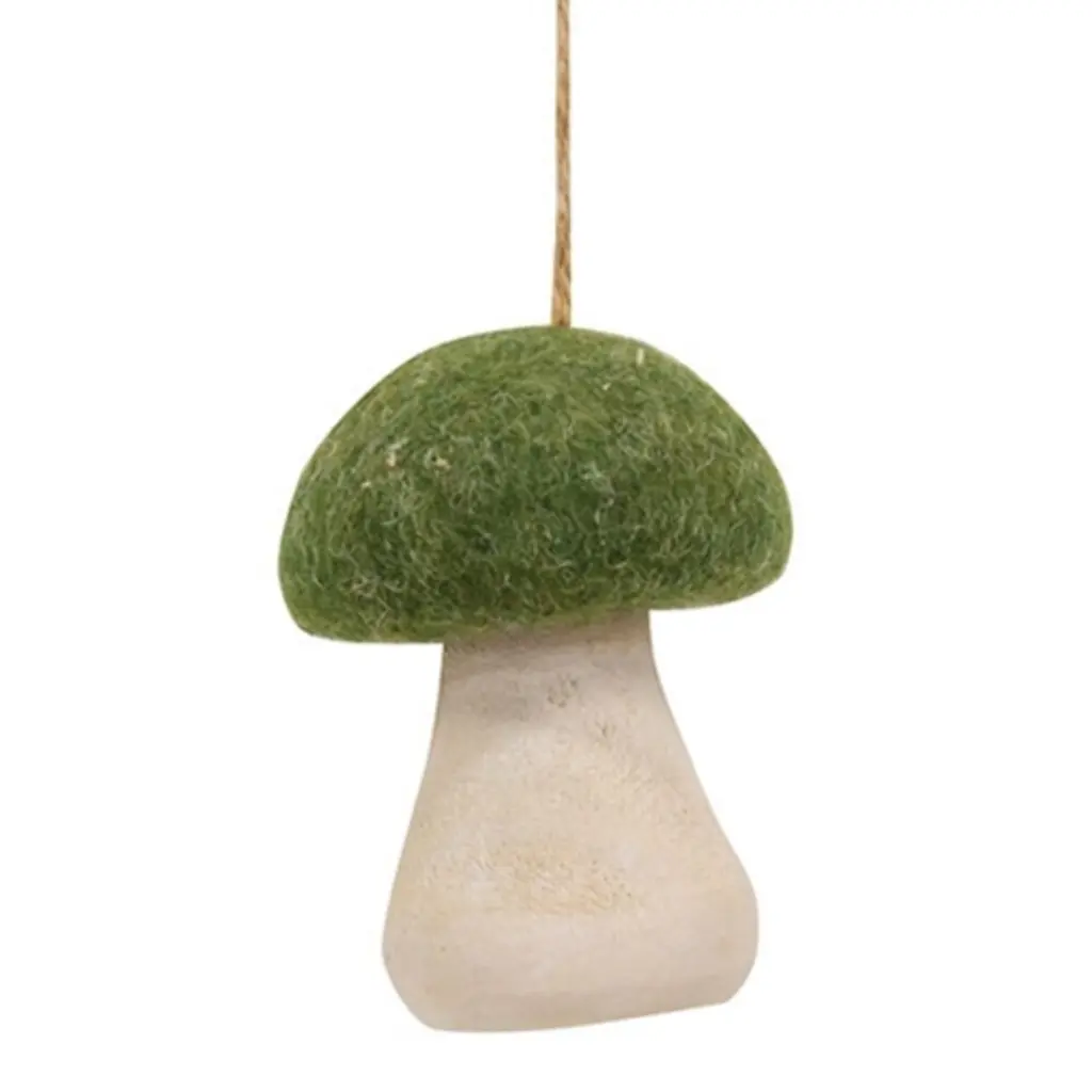 Green Felted Mushroom Ornament - 2.5” High And 1.5” In Diameter - Green