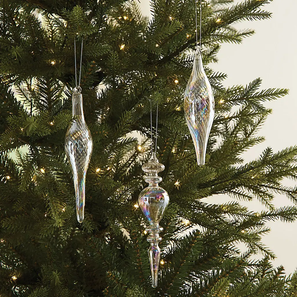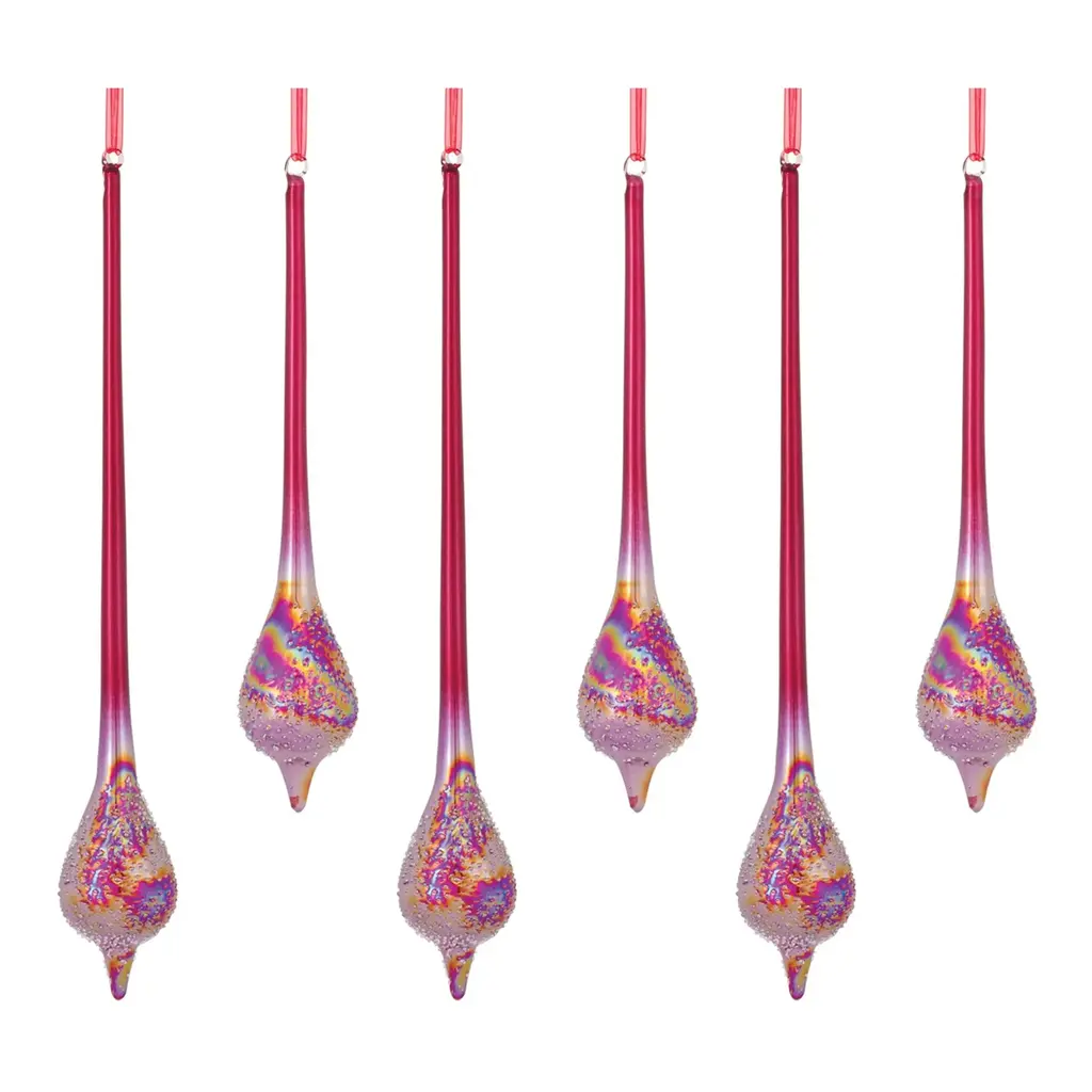 Green Iridescent Ribbed Glass Icicle Drop Ornament (Set Of 12) - 2.5 X 2.5 X 12" (L X W X H) - Green
