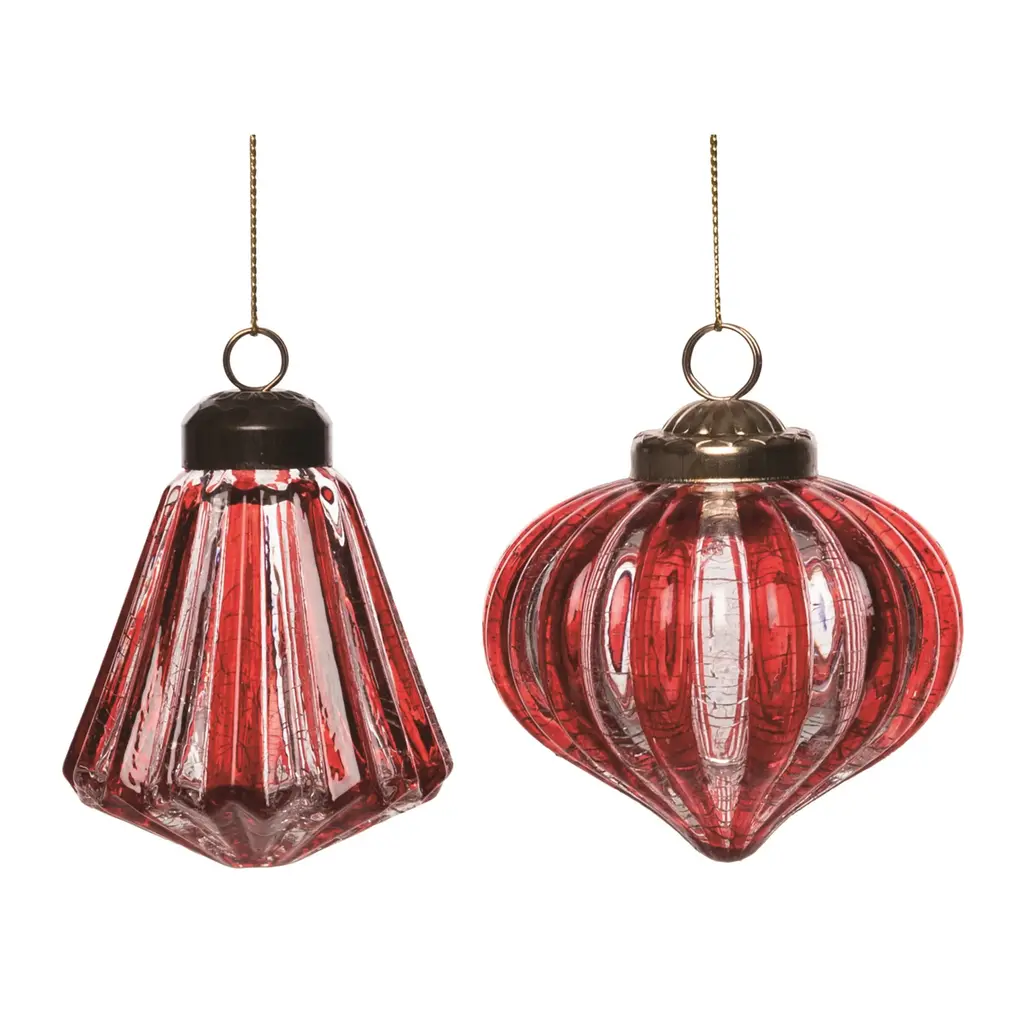 Green Ribbed Crackle Glass Ornament (Set Of 6) - 3 X 3 X 3.75 / 2.5 X 2.5 X 5" (L X W X H) - Green