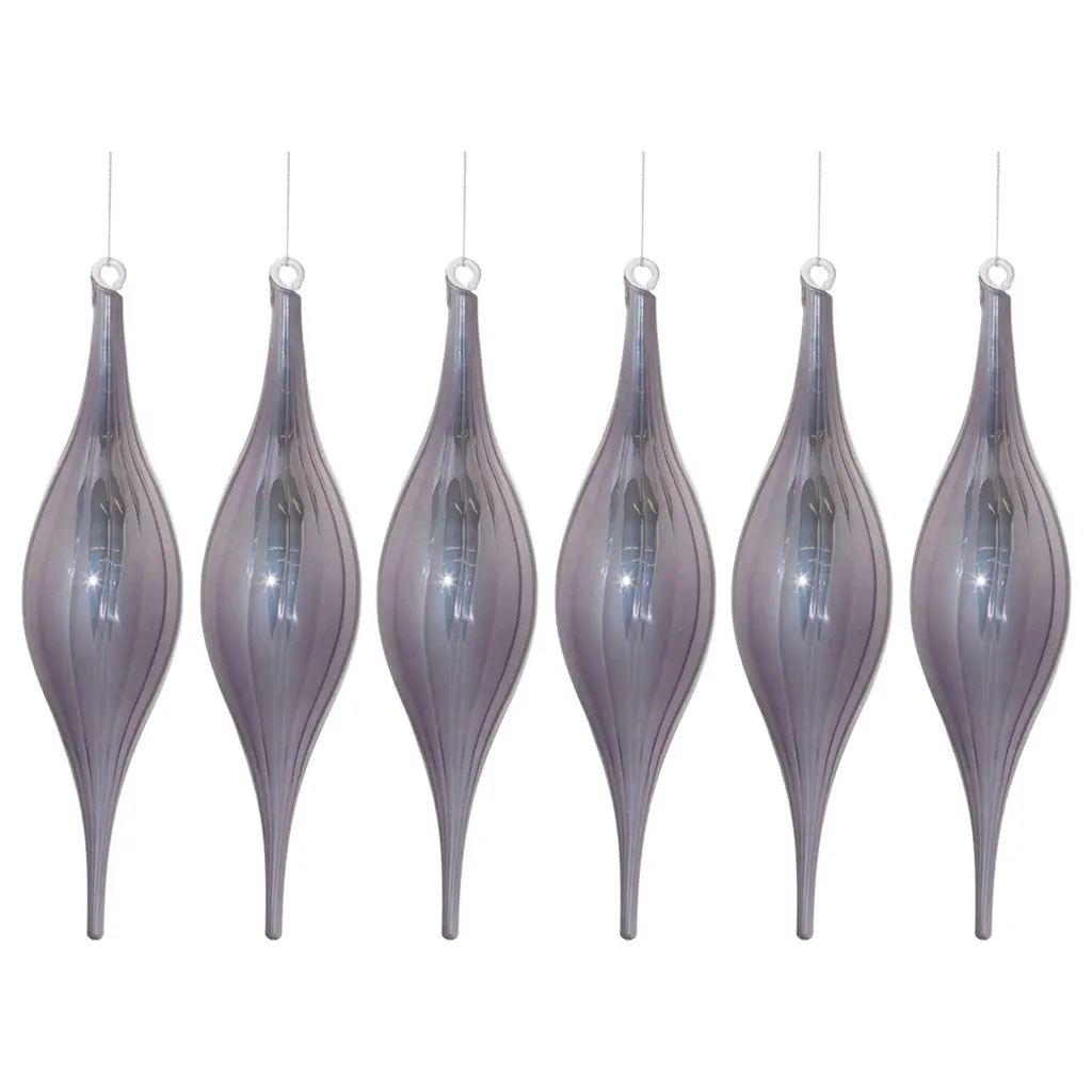 Adorn your Christmas tree with this stunning set of Ribbed Glass Drop Ornaments. Featuring six pieces, the wintry grey tones paired with the ribbed glass design is the perfect combination to create a memorable display. The quality glass composition with delicate silver string hanger is sure to endure for seasons to come. Whether you're adding a touch of cheer to your home or gifting to a loved one, these ornaments will definitely bring holiday spirit to your home.