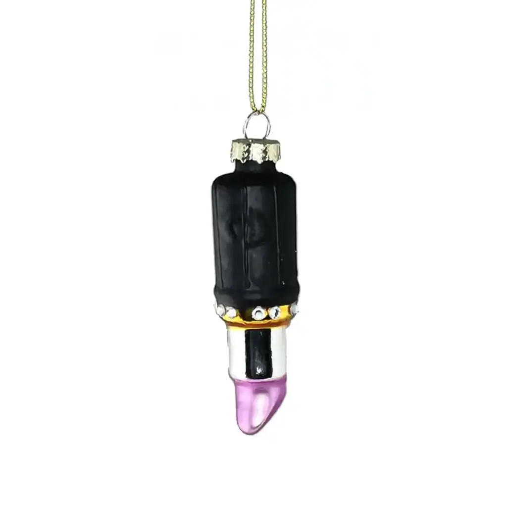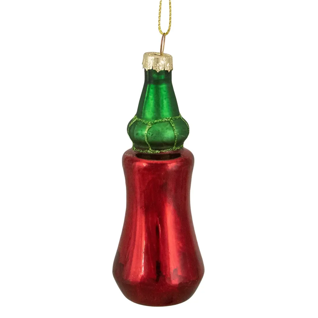 Hand-Painted Glass "Soy Sauce" Bottle Ornament With Glitter - Multi
