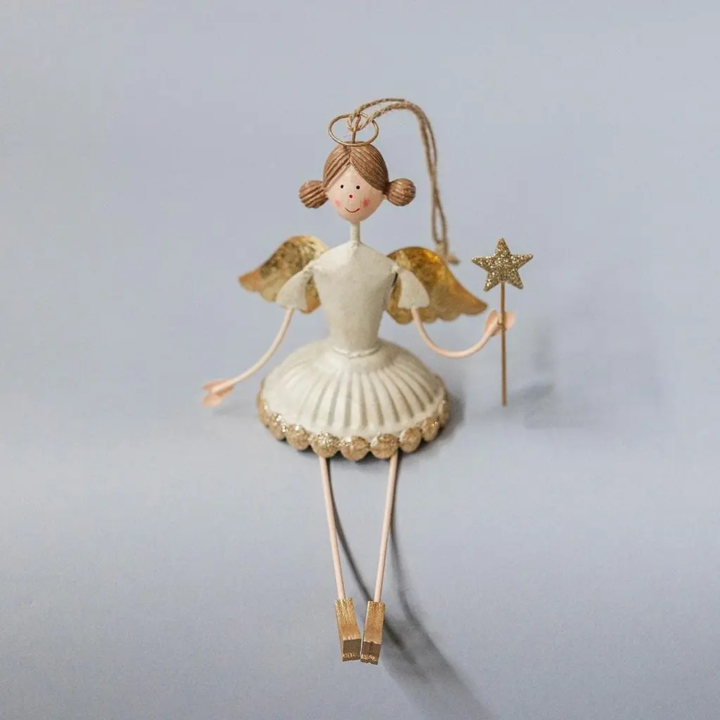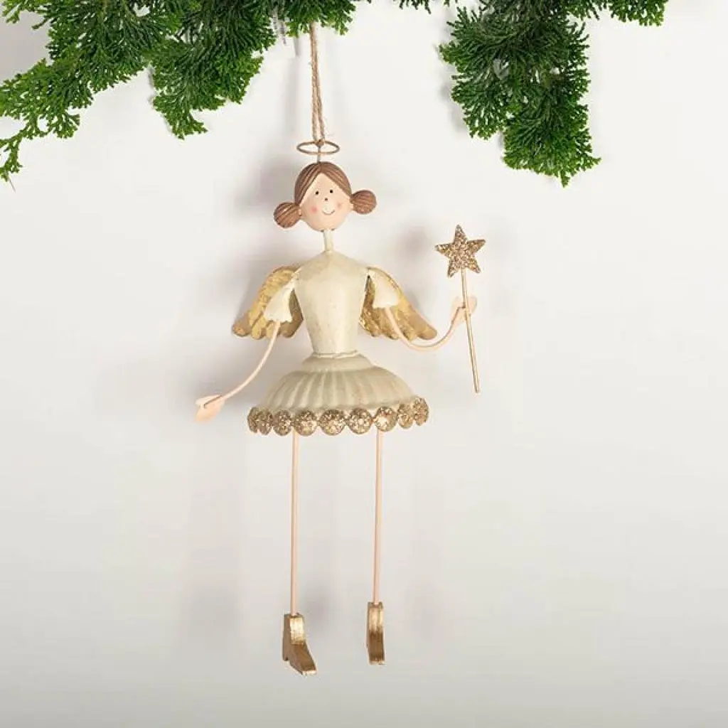 Hanging Metal Angel Holding A Star Wand Ornament - Multi