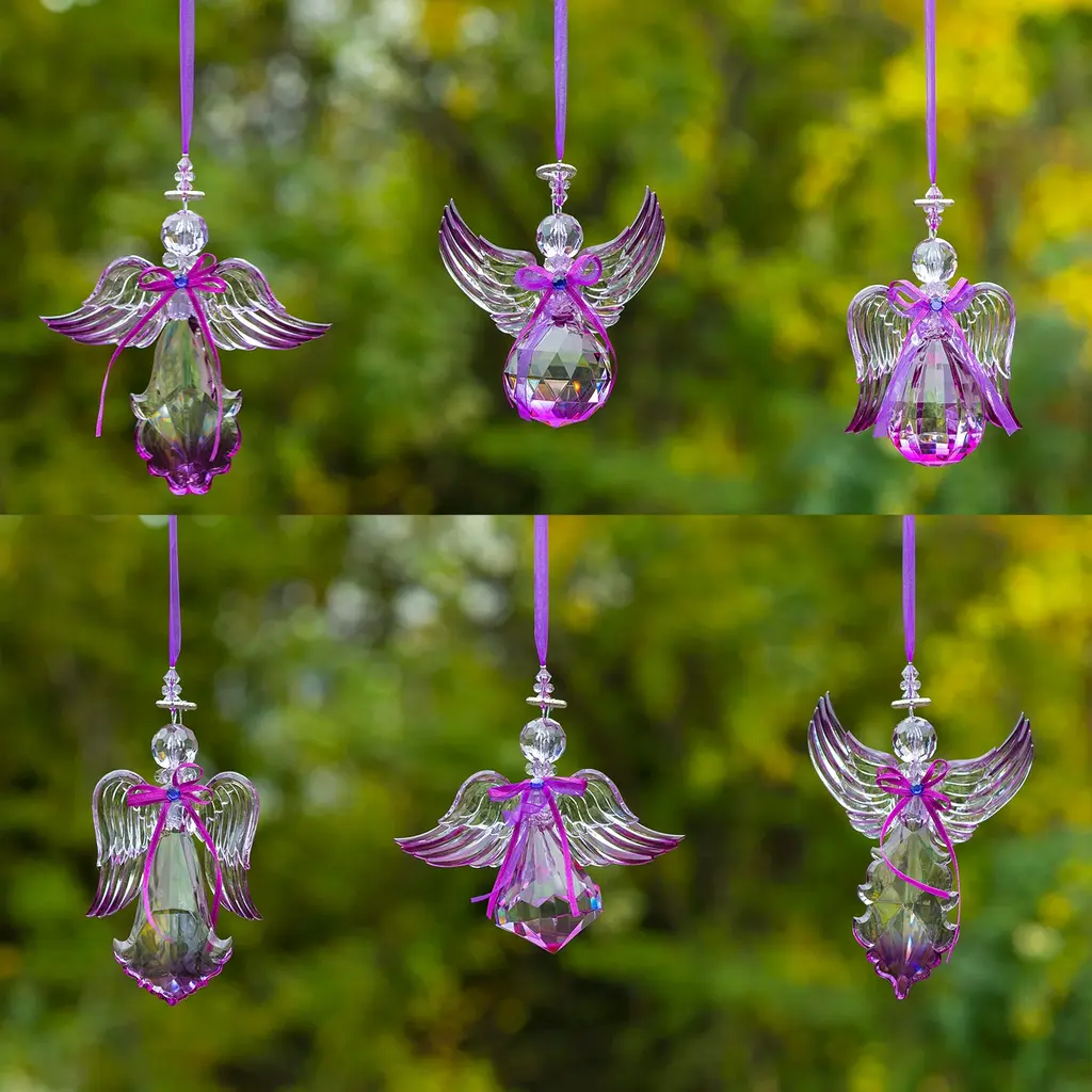 Hanging Purple Acrylic Angel Ornaments In 6 Assorted Style - 4X1x7.5 - 4X1x7.5 - Purple