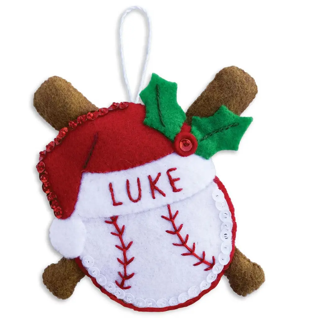 Bring the thrill of the rink to your holiday tree with the Hockey Personalized Felt Ornament Kit. This spirited design features two crossed sticks, a bold black puck, and festive red and green accents. Personalize the puck with a name to celebrate your favorite player, coach, or fan. It’s the perfect gift for anyone who lives for slapshots, saves, and snowy game days. Includes pre-stamped USA made felt, DMC floss, sequins, beads, needle, and complete instructions.