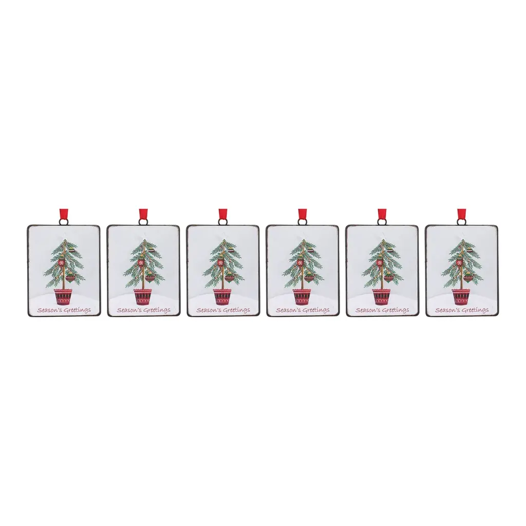 Tag Ornament (Set of 12) 5.5"L x 8.5"H Iron Get into the holiday spirit with this set of Holiday Sentiment Tag Ornaments! Whether you're adding a touch of cheer to your tree or gifting to a loved one, these ornaments will definitely bring smiles to your home. With festive red and white tones, two sweet sentiments including "Let it Snow", and a quality iron metal construction, these joyful decorations are sure to last for years to come! Add a little something special this holiday season with Sentiment Tag Ornaments. Specification: