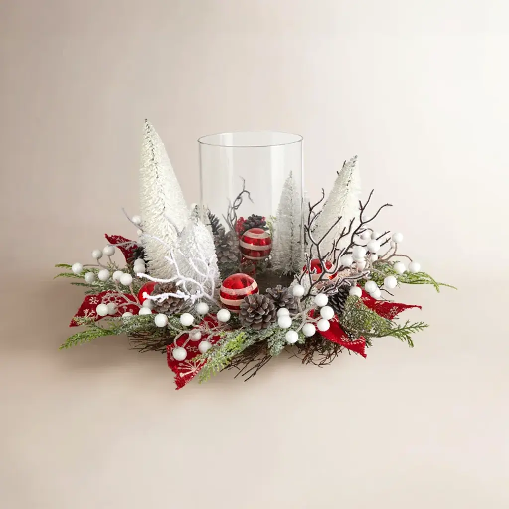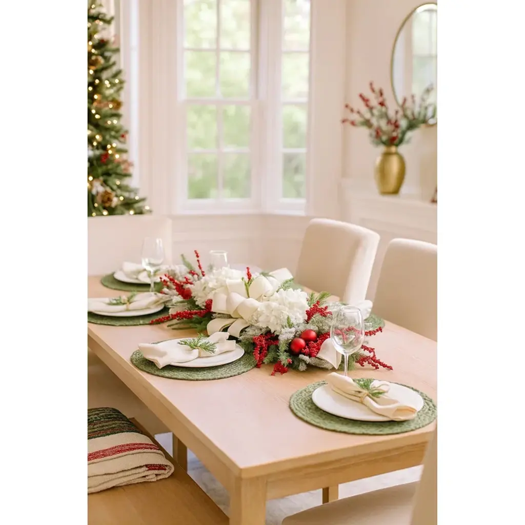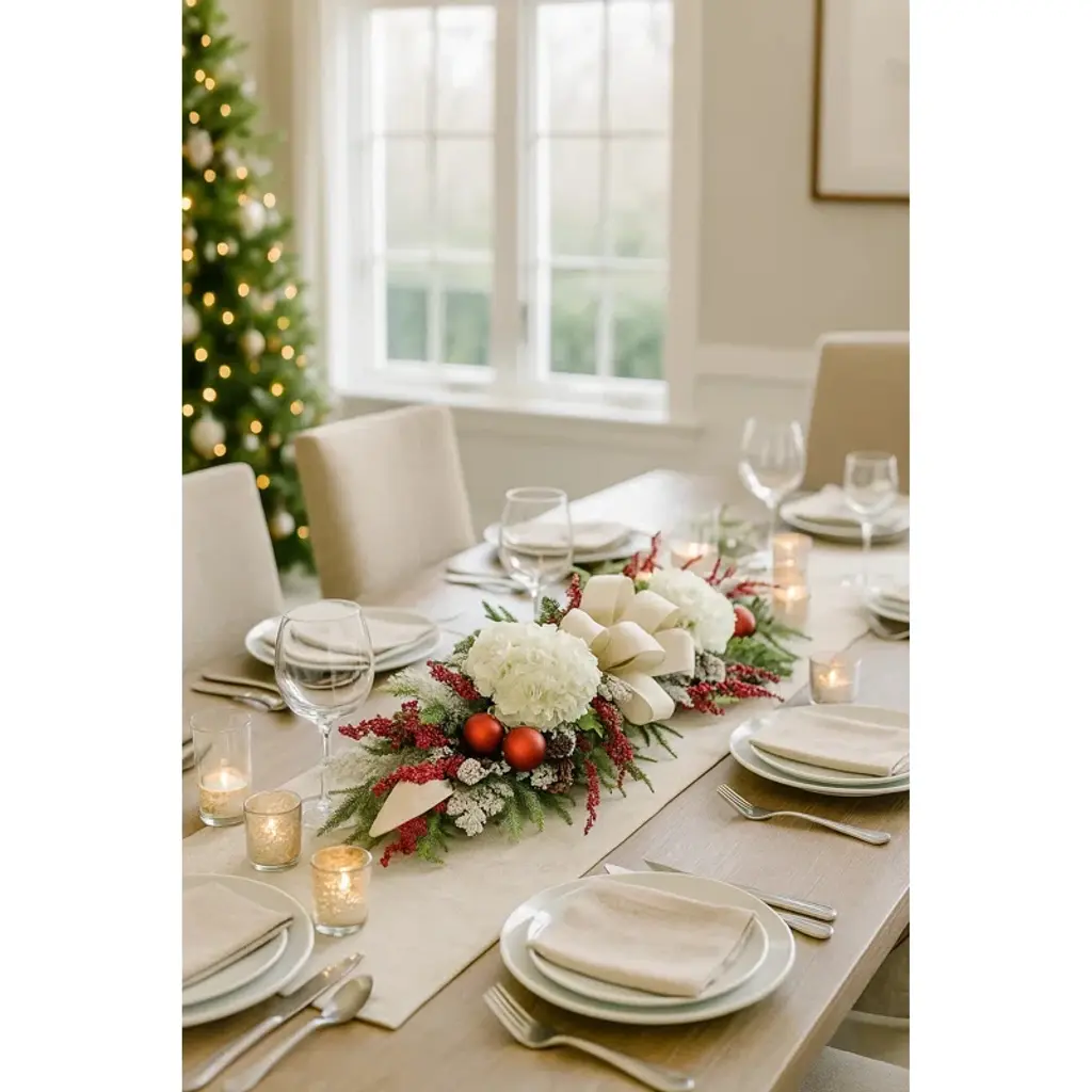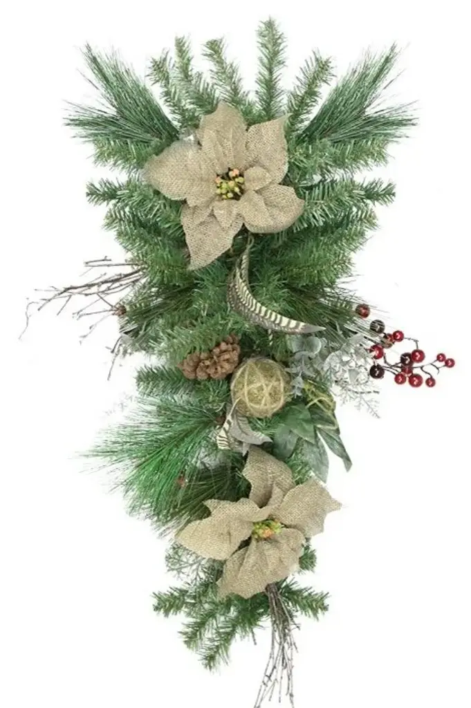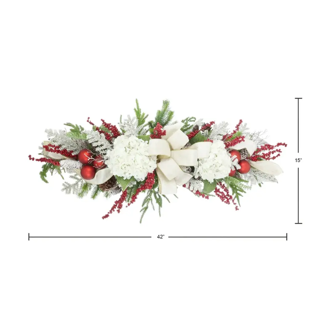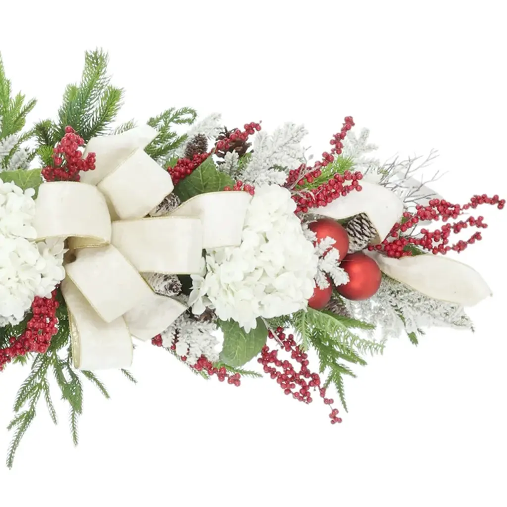 Holiday Swag With Hydrangeas, Ornaments And A Bow