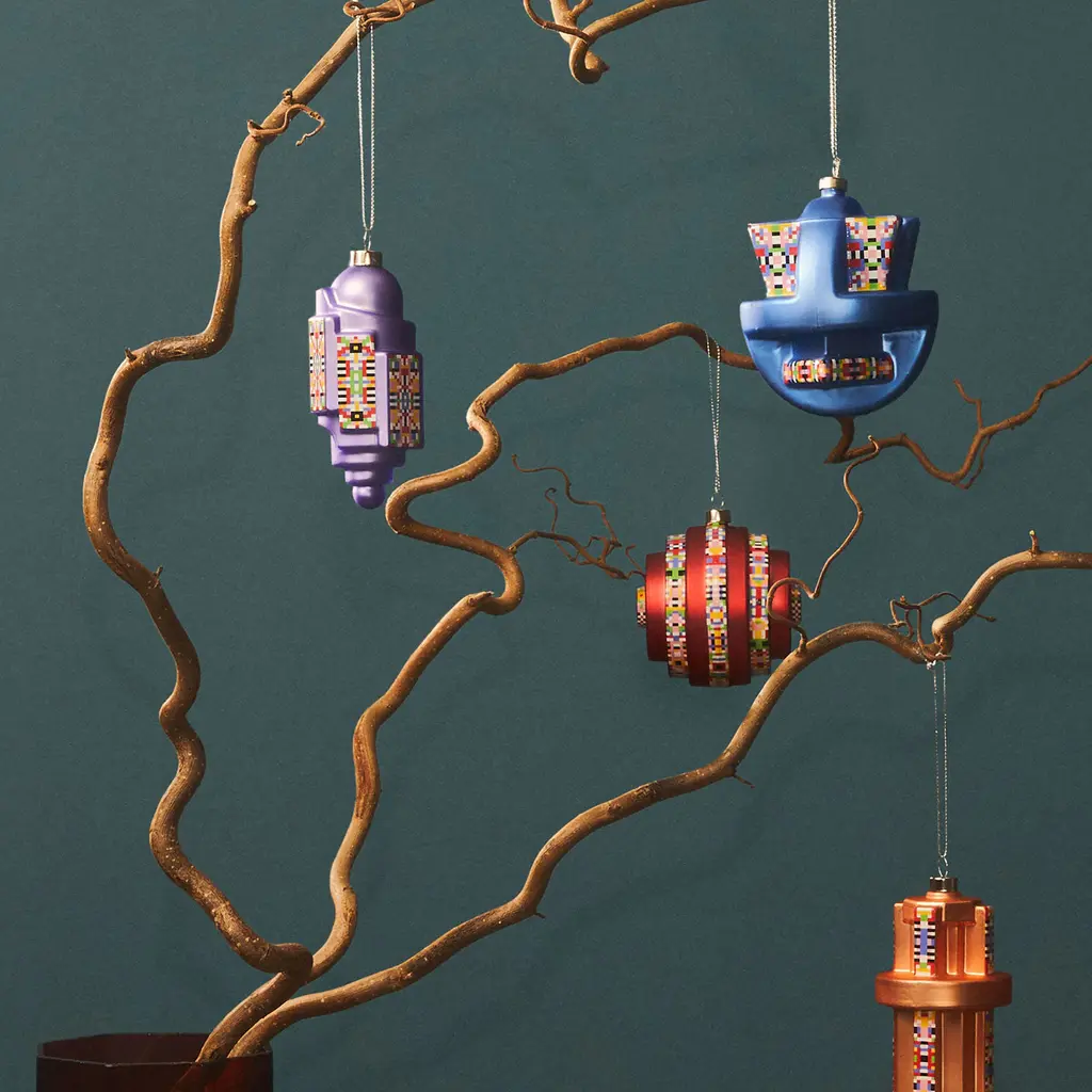 Take your Christmas decorations to a whole new level of creativity with the Holyhedrics ornaments from Italian brand Alessi. Elena Salmistraro designed the collection with a blend of bright colors, clean geometric shapes, and modern interpretations of traditional symbols and motifs. The Holyhedrics Glow Christmas Tree Ornament is playful and vibrant, featuring an unusual shape and hand-decorated patterns that resemble colorful pixels. Perfect to celebrate Christmas, each glass ornament has a blue color and a multi-color pattern applied by hand. Whether used on its own or with the other designs from the Holyhedrics series, the Alessi Holyhedrics Glow Christmas Tree Ornament will always create a focal point and brighten the festive mood.