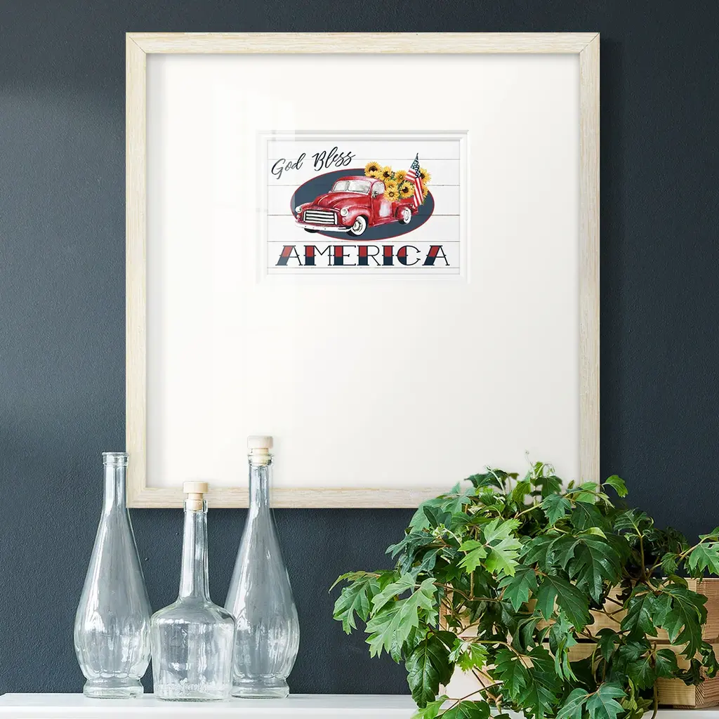 Description: This is a decorative rectangular ornament made of lightweight wood with a vintage white finish. The ornament reads “Home Sweet Farm” in blue and red script and features a vintage red USA truck with an American flag and cheerful yellow sunflowers. The top of this ornament includes a black wire loop for a hanging display, perfect for placing on a tree, hook, or knob during the patriotic season. Specification: