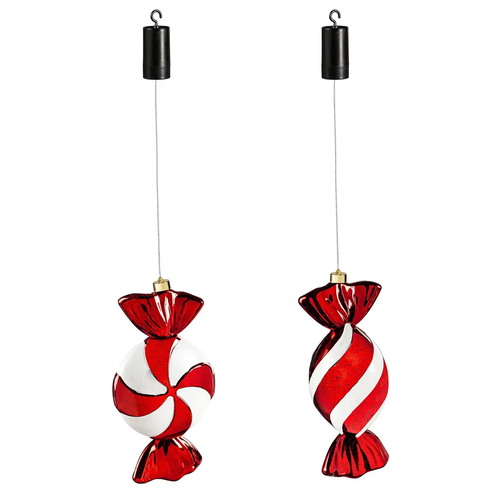 Add effortless elegance to your holiday home and landscape with our Shatterproof Lighted Large Candy Swirl Ornament. This stunning ornament looks great hanging on your porch, deck or inside your home. Ornament features an internal string of warm white LED lights that give this piece a mesmerizing look when the sun goes down. Lights are battery-operated on a timer: 6 hours on, 18 hours off for convenient nighttime operation. With the included hook and cord, it’s easy to hang to start creating your winter wonderland in no time. Requires 4x AA batteries, not included.