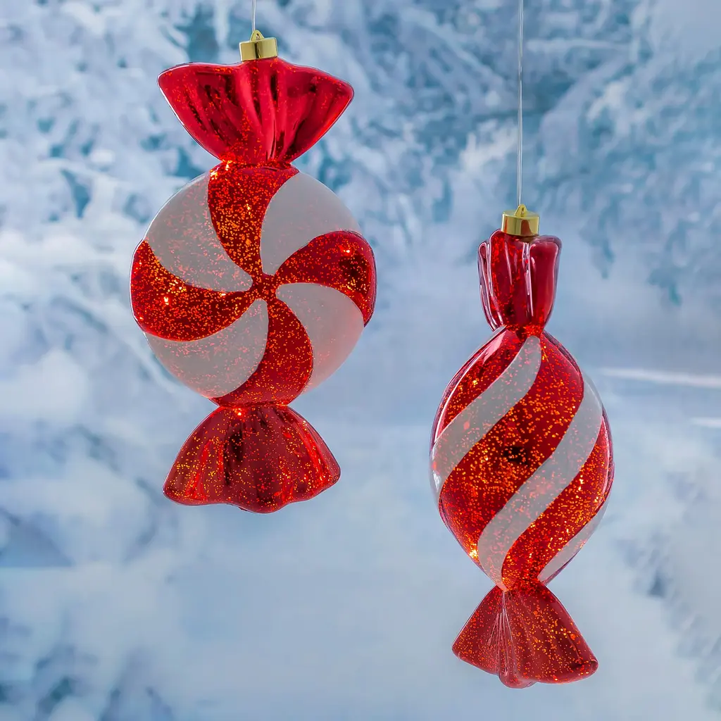 Indoor/outdoor Shatterproof Lighted Large Candy Swirl Ornament