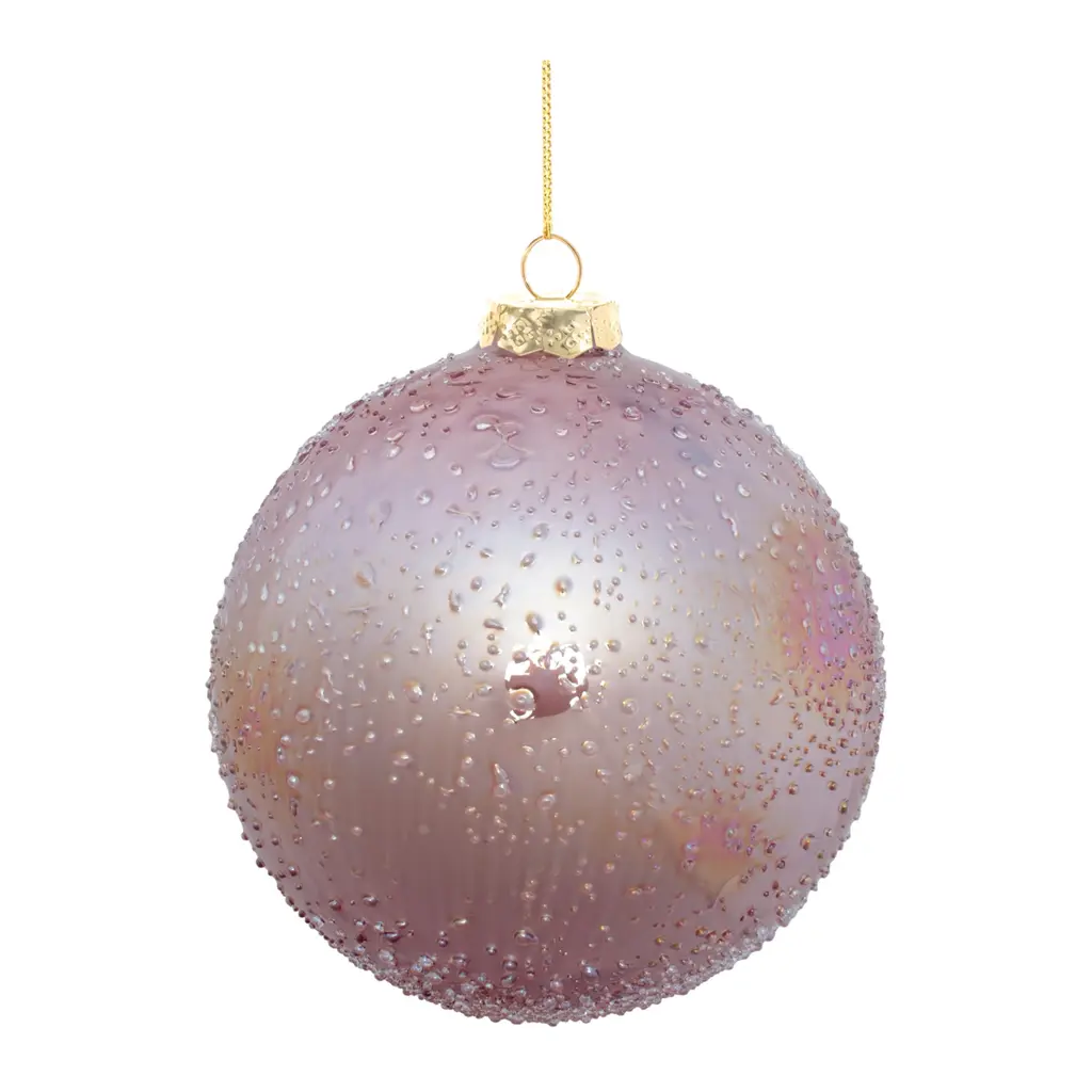 Add a touch of glamorous elegance to your holiday décor with these Iridescent Beaded Glass Ornaments. Designed in soft pink tones with a trendy iridescent finish, these ornaments feature traditional ball shapes adorned with chic bead accents, making them a sophisticated addition to your seasonal display. The delicate string hanger and gold ornament caps enhance the luxurious feel, making these ornaments perfect for hanging on your Christmas tree, wreaths, or garlands. Sold in a set of 4 with two assorted sizes, they offer a refined, stylish touch to your holiday décor.