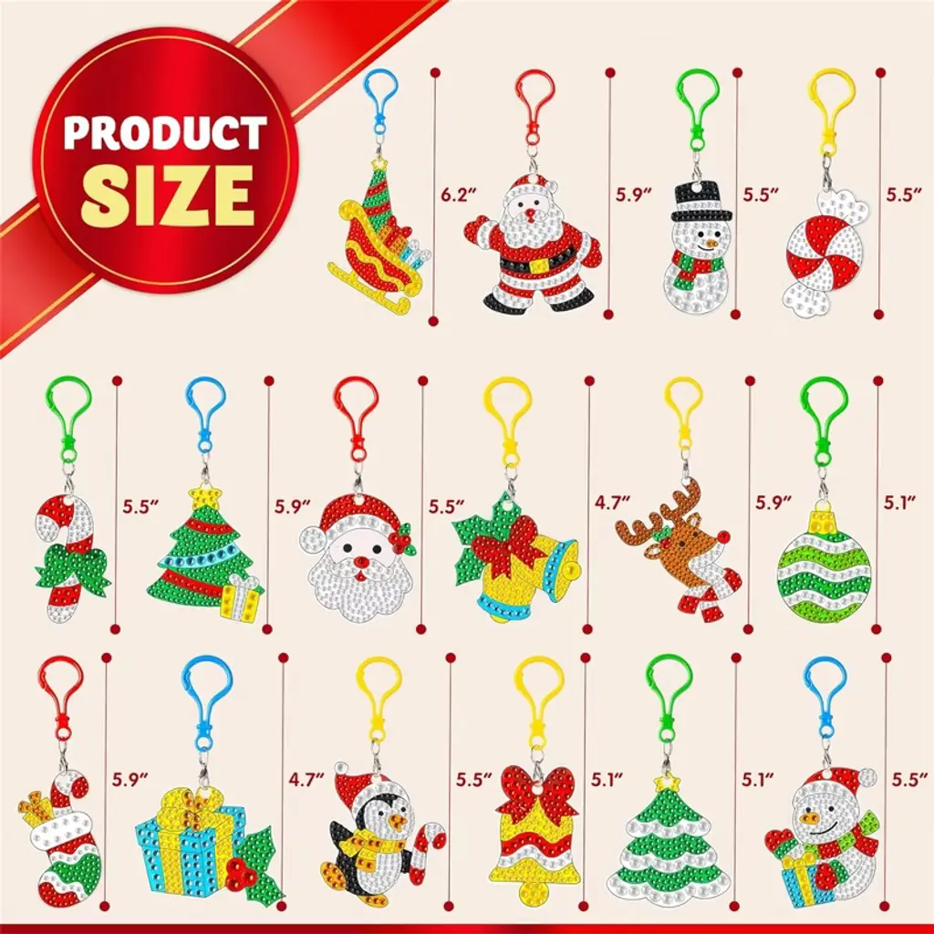 Joyfy Christmas Tree Decorations,16 Pcs Christmas 5D Diy Diamond Art Ornaments Craft Kit With Keychains, Kids Xmas Party Favors