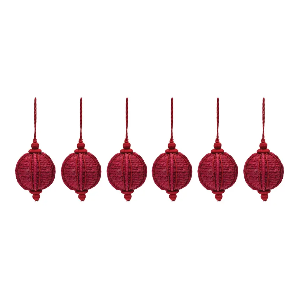 Elevate your holiday decor with our red knitted onion ornaments. This pack of 4 adds warmth and charm to your Christmas decorations. Featuring intricate knitted designs in classic red, these ornaments bring a cozy touch to your festive setting. Ideal for adorning trees or enhancing various displays, they create a welcoming atmosphere for your holiday celebrations. Product Features: 4-piece set Fully dimensional ornament Accented in a knitted design Comes ready-to-hang on a red jute cord For indoor use only Dimensions: 6" high x 4" diameter Material(s): jute