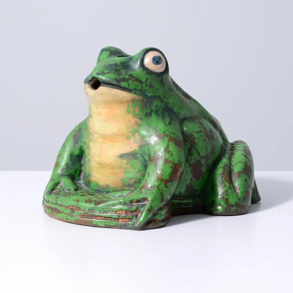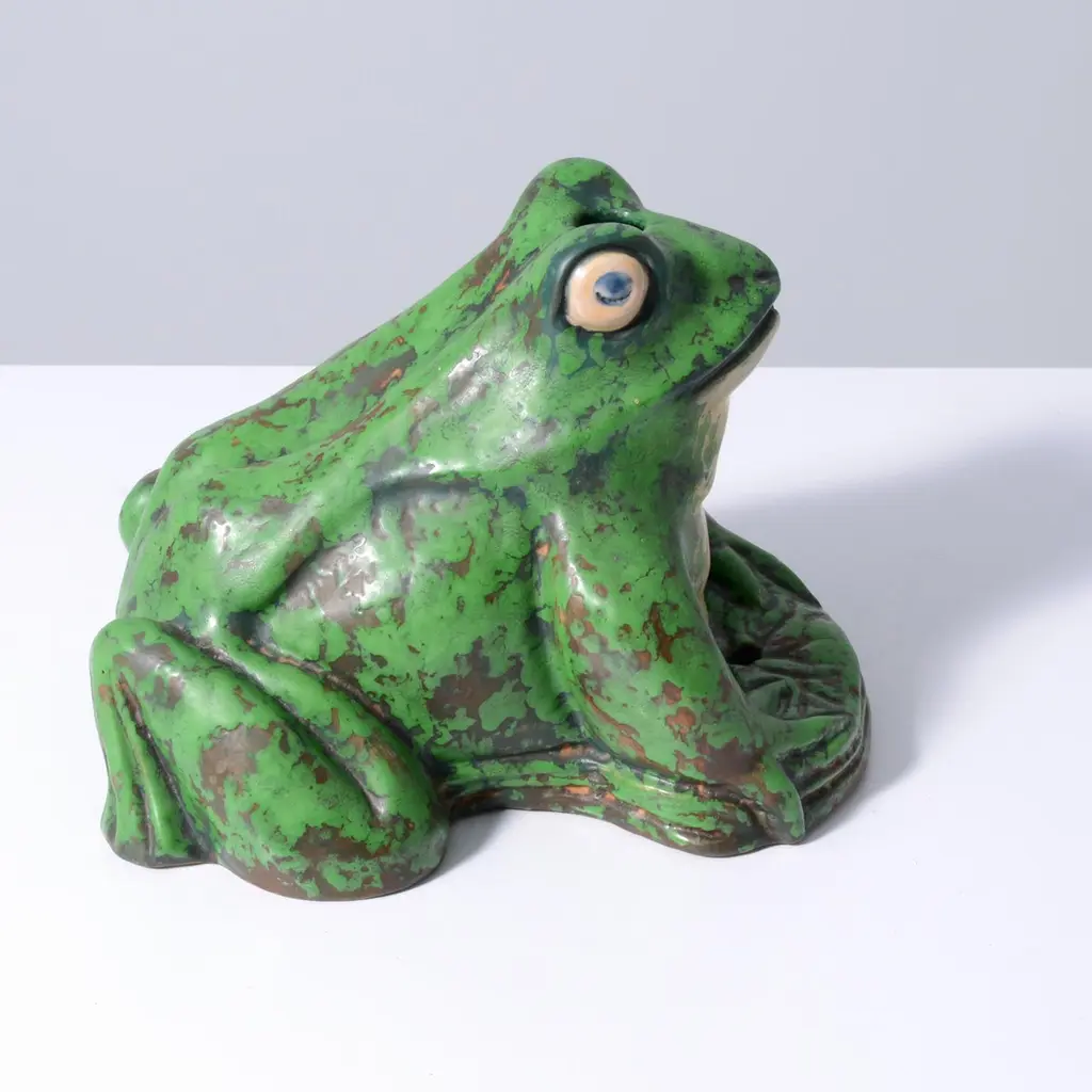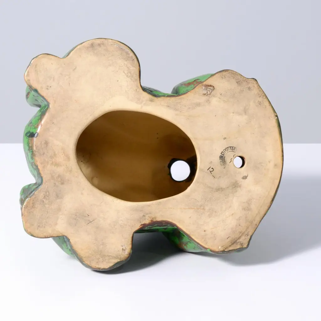 Artist/Designer; Manufacturer: Rudolph Lorber (1873-1952); Weller Pottery Co.Marking(s); signedMaterials: ceramicDimensions (H, W, D): 8.5"h, 11"w, 10"dAdditional Information: The COPPERTONE line of pottery by Weller Pottery Co. was created in the late 1920s through the mid-1930s. Primary themes from nature include frogs, fish, and aquatic plants. Note: We have a large collection of frogs and turtles from the COPPERTONE line available and listed on 1stdibs (see detail photographs).