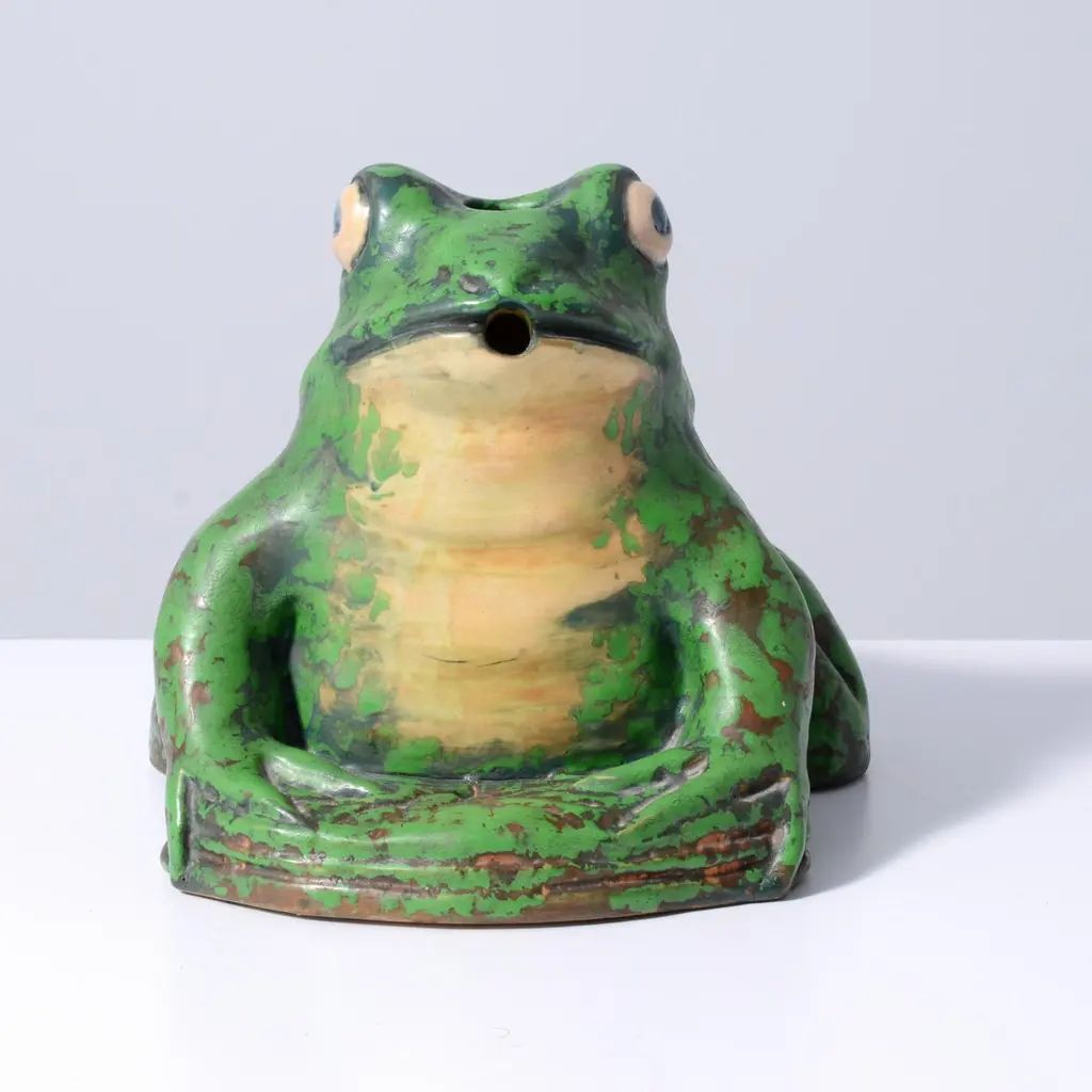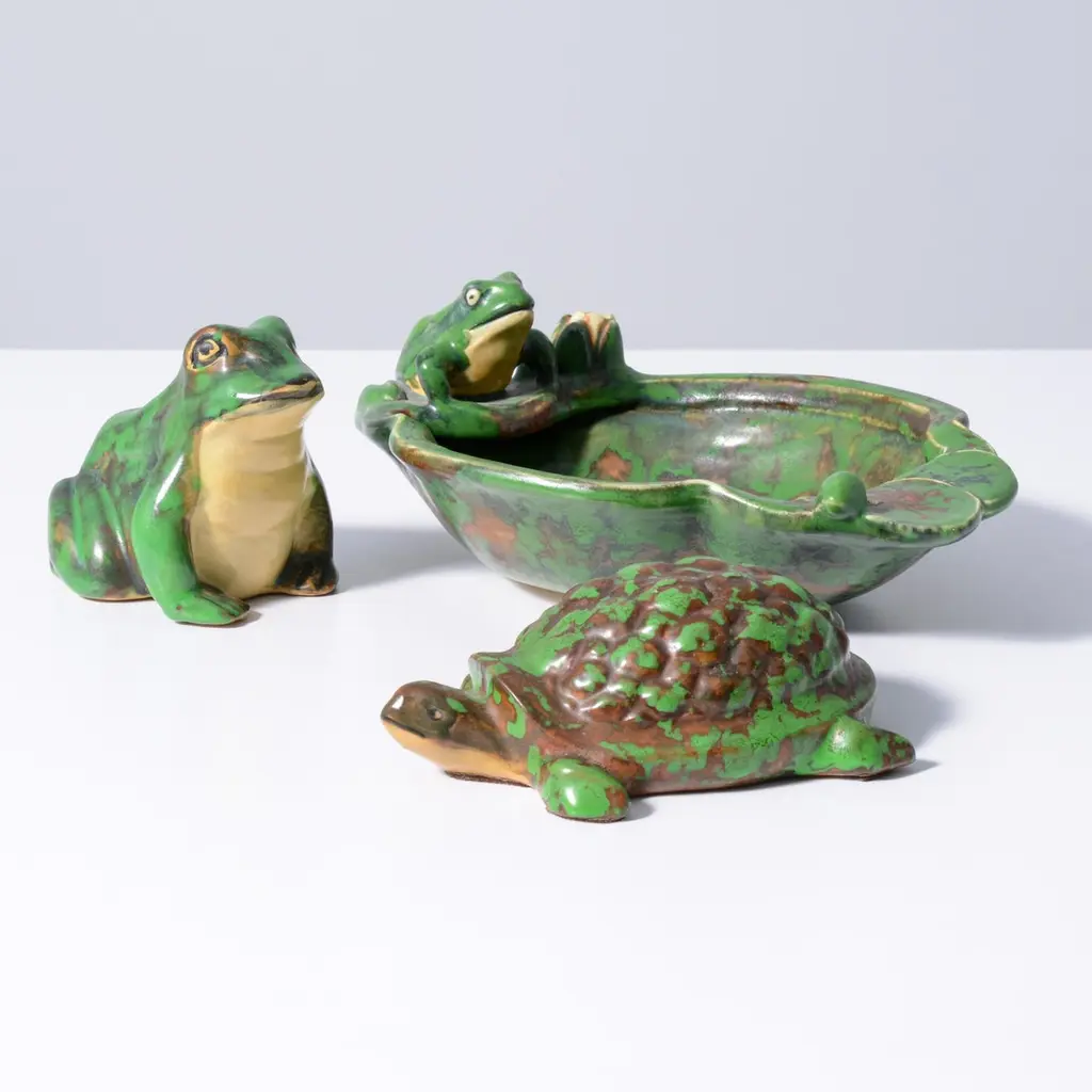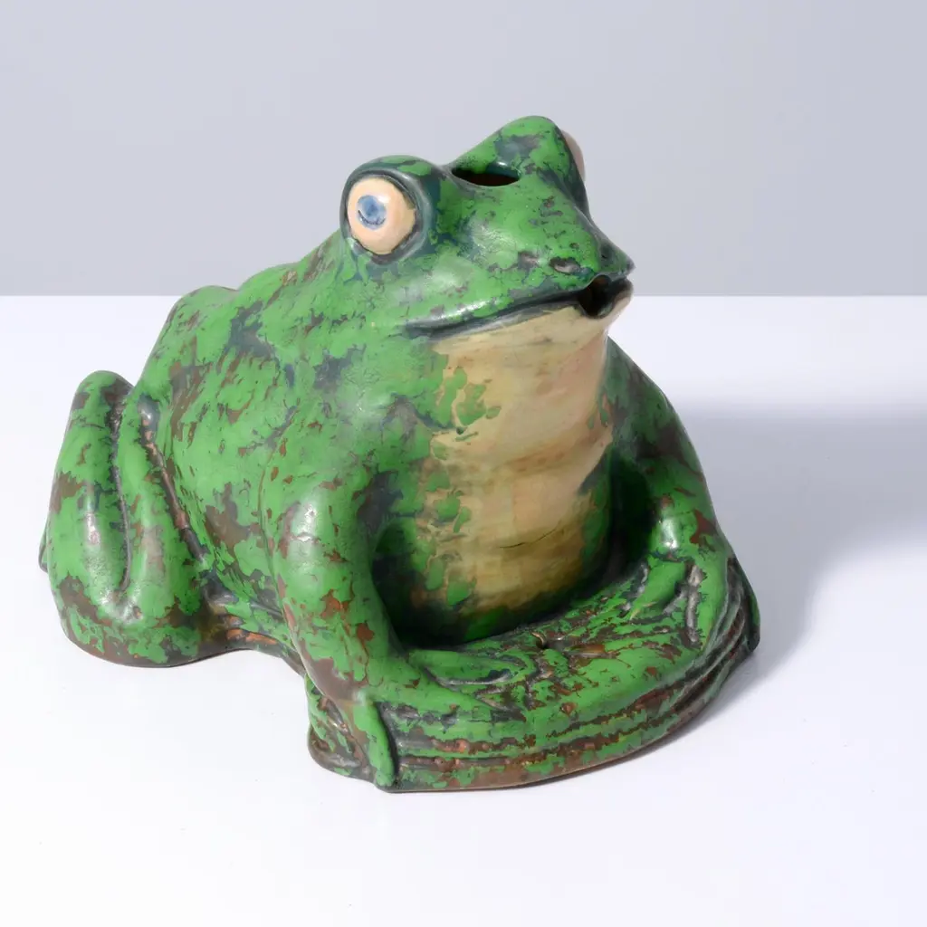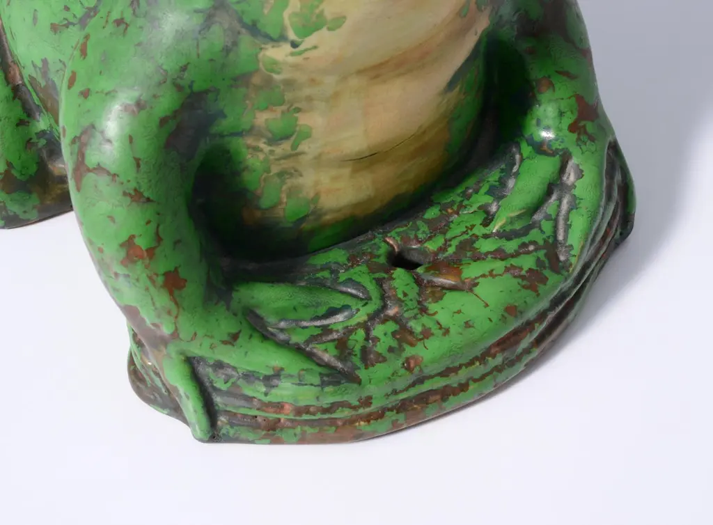 Artist/Designer; Manufacturer: Rudolph Lorber (1873-1952); Weller Pottery Co.Marking(s); signedMaterials: ceramicDimensions (H, W, D): 8.5"h, 11"w, 10"dAdditional Information: The COPPERTONE line of pottery by Weller Pottery Co. was created in the late 1920s through the mid-1930s. Primary themes from nature include frogs, fish, and aquatic plants. Note: We have a large collection of frogs and turtles from the COPPERTONE line available and listed on 1stdibs (see detail photographs).
