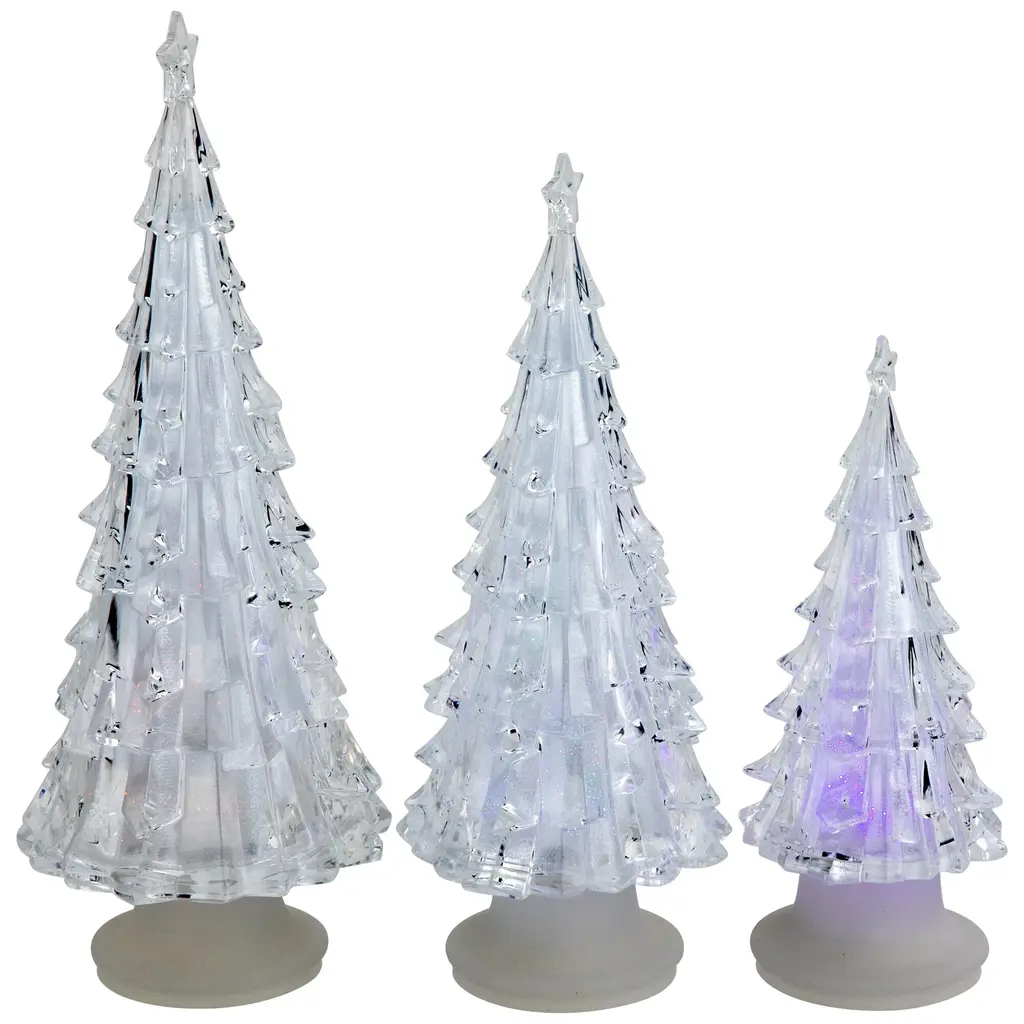 Led Color Changing Acrylic Christmas Tree Decorations 8.5" Set Of 3 - Clear - 1 Foot