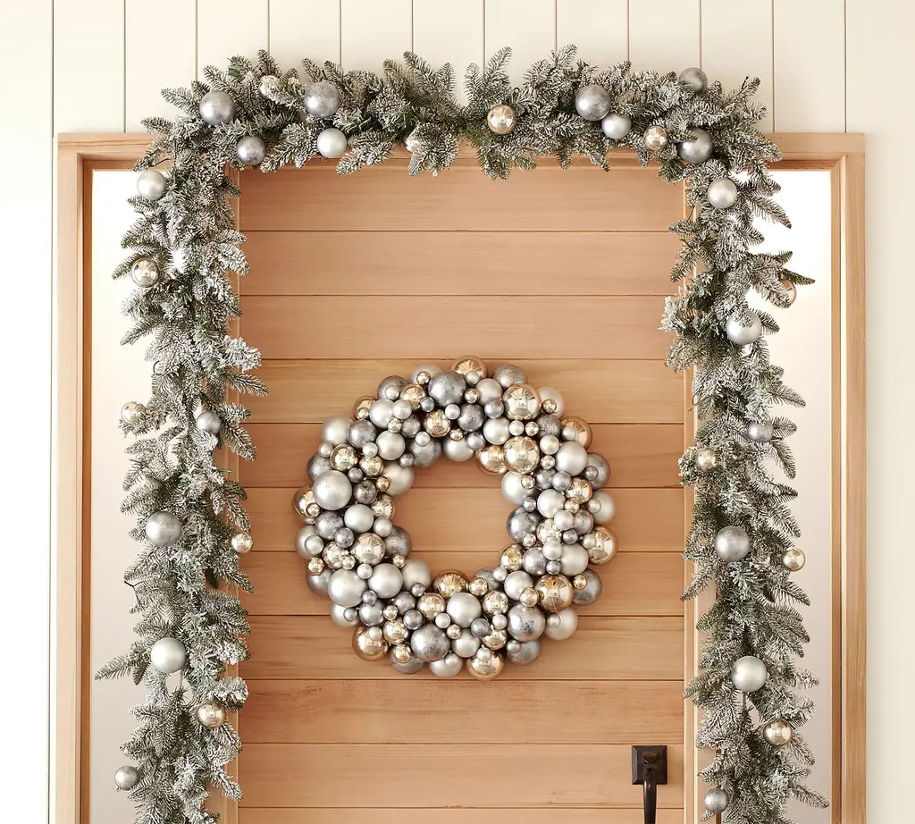 Pre-Lit Faux Frosted Pine and Ornament Wreath & Garland