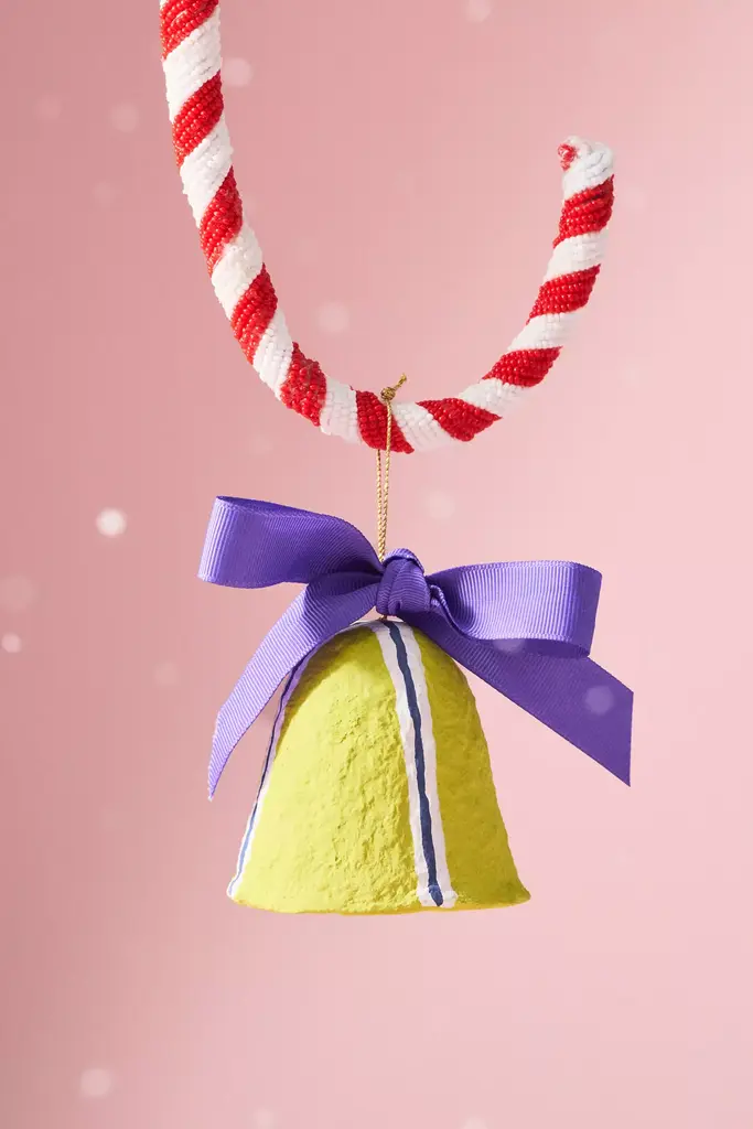 **May your trees be merry and bright!** Ring in the season and add some charming texture with this festive bell ornament.