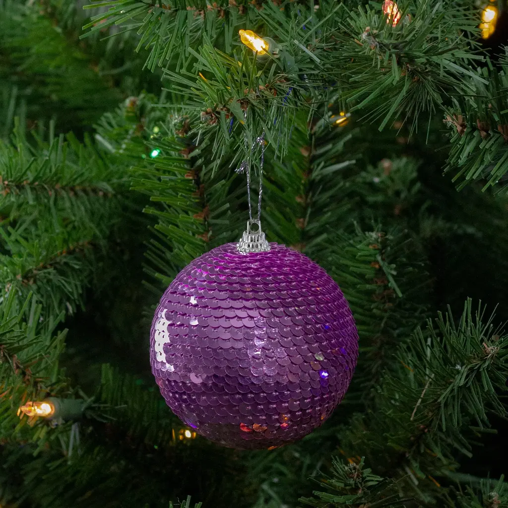 This unique ornament would be a perfect addition to your Christmas tree or a great gift for that special person in your life! It features a magenta pink Christmas ornament with sequins that cover the entire ornament. Shatterproof ornaments combine the beauty and luster of real glass with the unbreakable practicality of plastic. Product Features: Magenta pink ball Christmas ornament. Embellished with sequins throughout. Fully dimensional ornament. Includes silver hanging string. Comes individually wrapped in its own bag. Dimensions: 3" diameter. Material(s): foam/plastic