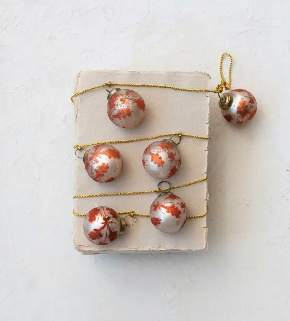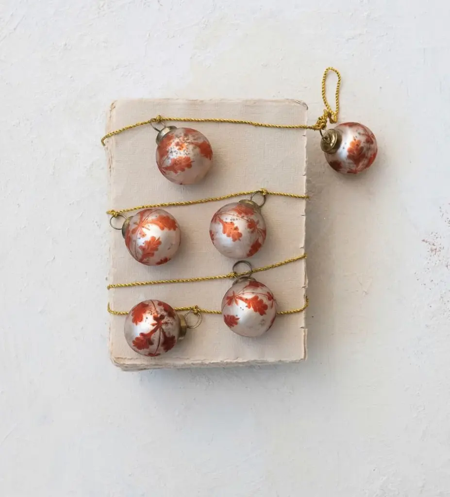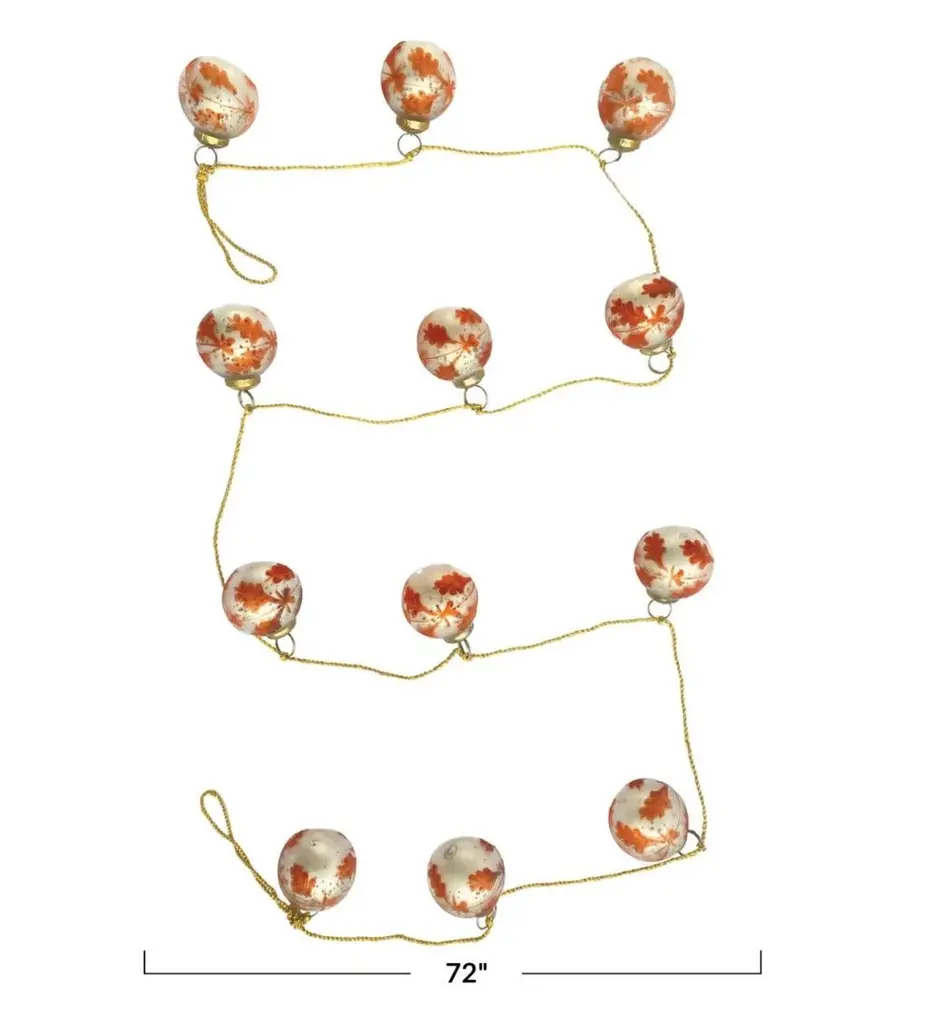 Add a touch of whimsy to your holiday decor with our Mercury Glass Ornament Garland. The etched mercury glass adds a subtle shimmer while the golden cord provides a festive touch. This garland is the perfect length for any mantle or banister. Dimensions: 72"L x 2"H Material: Etched Mercury Glass and Golden Cord