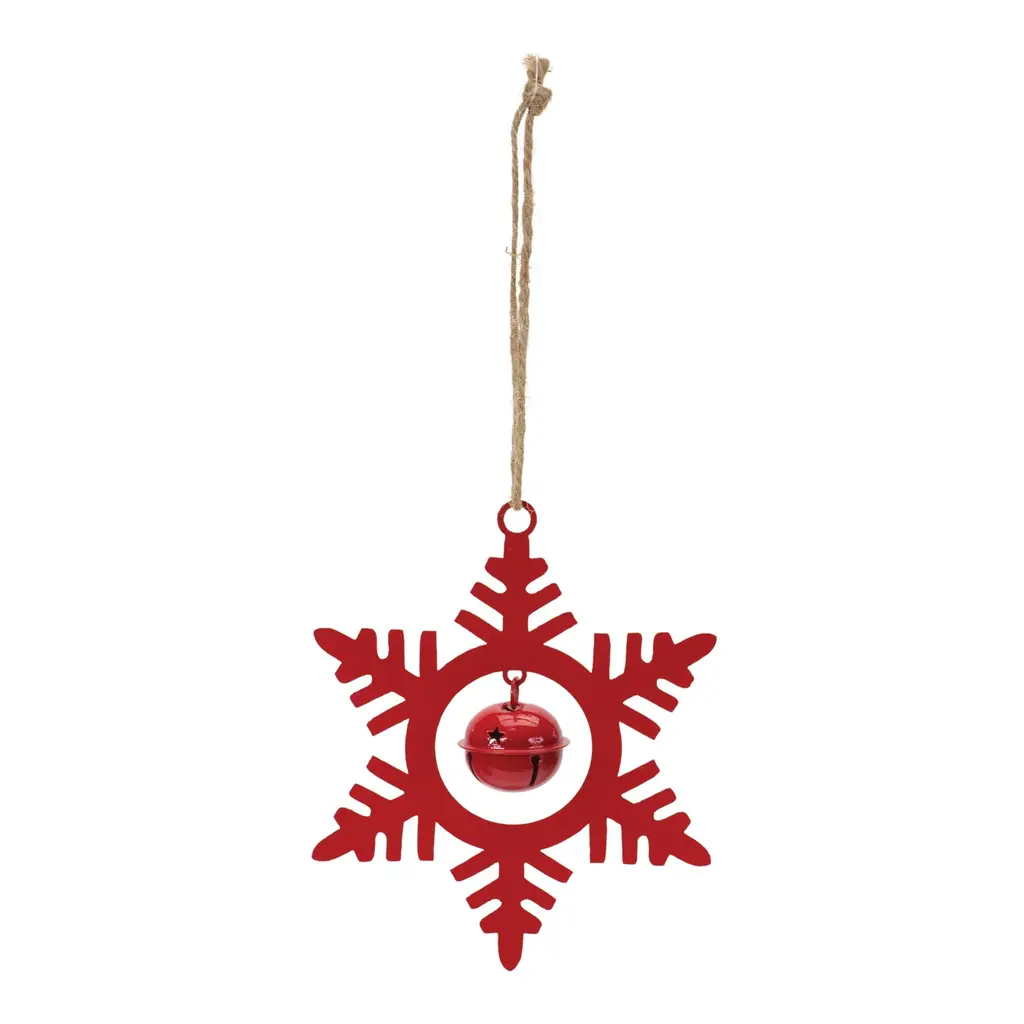 Metal Snowflake With Bell Ornament (Set Of 12) - Red
