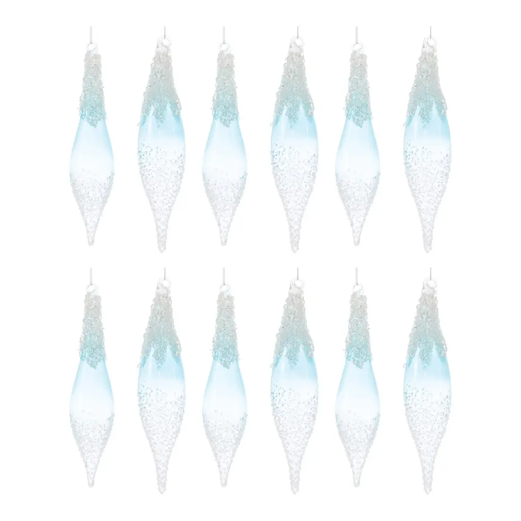 Metallic Textured Glass Icicle Christmas Tree Ornaments Set Of 6