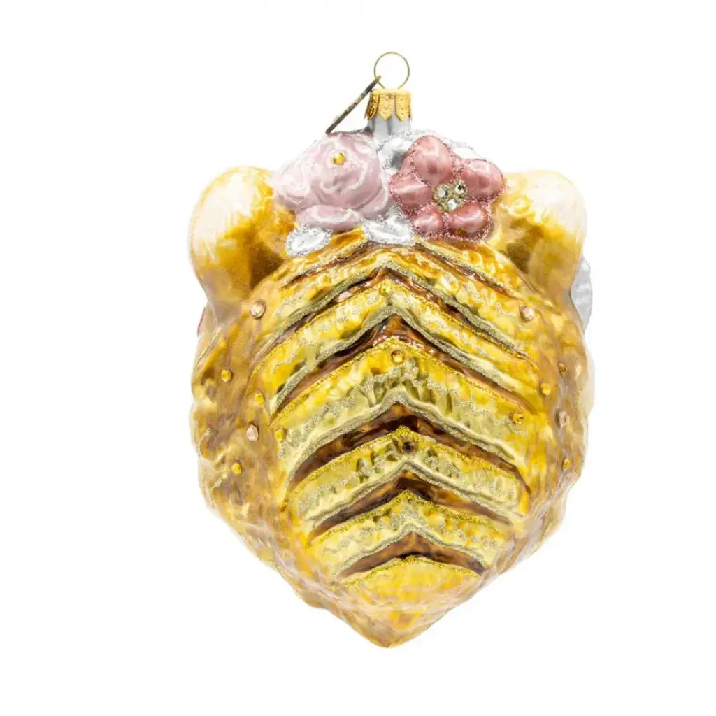 Crowned with a rose gold floral wreath, this majestic tiger gleams in radiant gold tones. Hand-painted in exquisite enamel detail and accented with shimmering crystals, the ornament captures the regal spirit and striking beauty of this extraordinary creature.