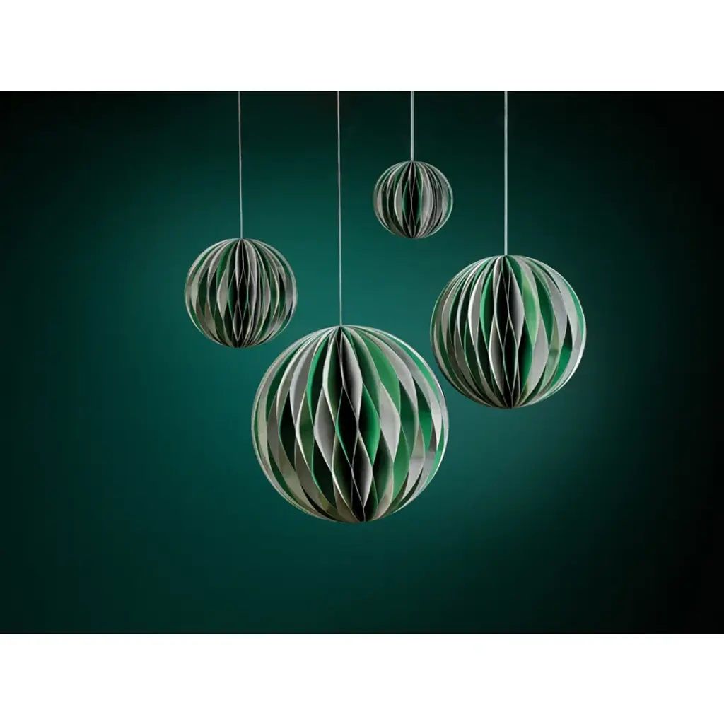 Shape up your seasonal style. These green paper honeycomb ornaments bring dimension + texture to your Christmas decor. Each one folds flat for easy storage and secures with hidden magnets for a seamless 3D shape. Hang a few together to add festive charm to your tree, mantel, or holiday tablescape.