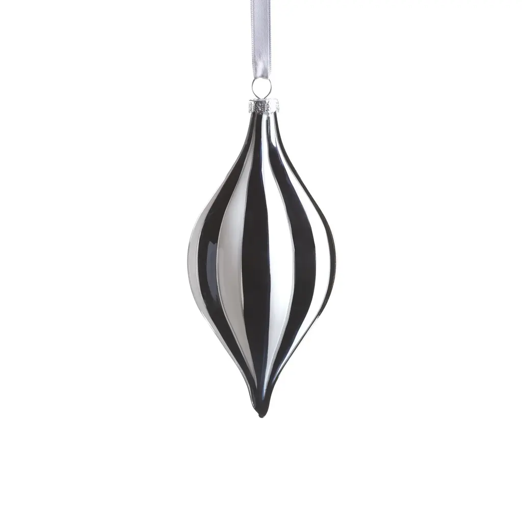 Monochrome Stripe 8-Piece Glass Drop Ornament Set, 2.75" X 5.75"