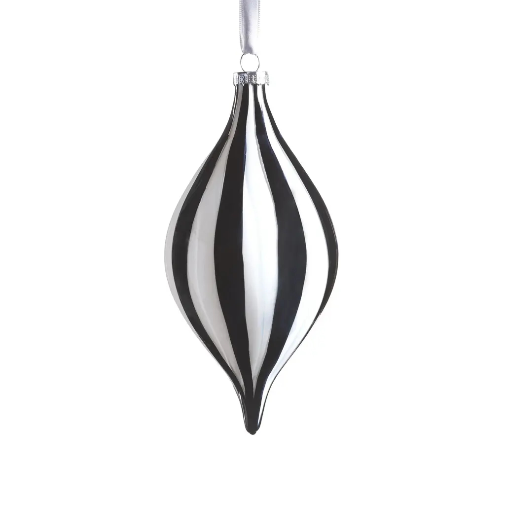 Monochrome Stripe 8-Piece Glass Drop Ornament Set, 3.25" X 6.5"