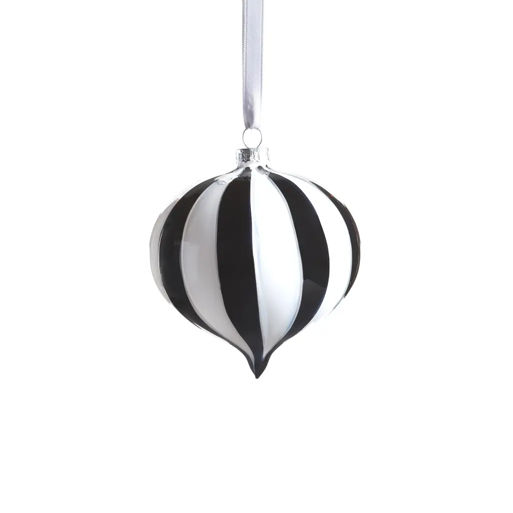 Monochrome Stripe 8-Piece Glass Onion Ornament Set, 4" X 5"