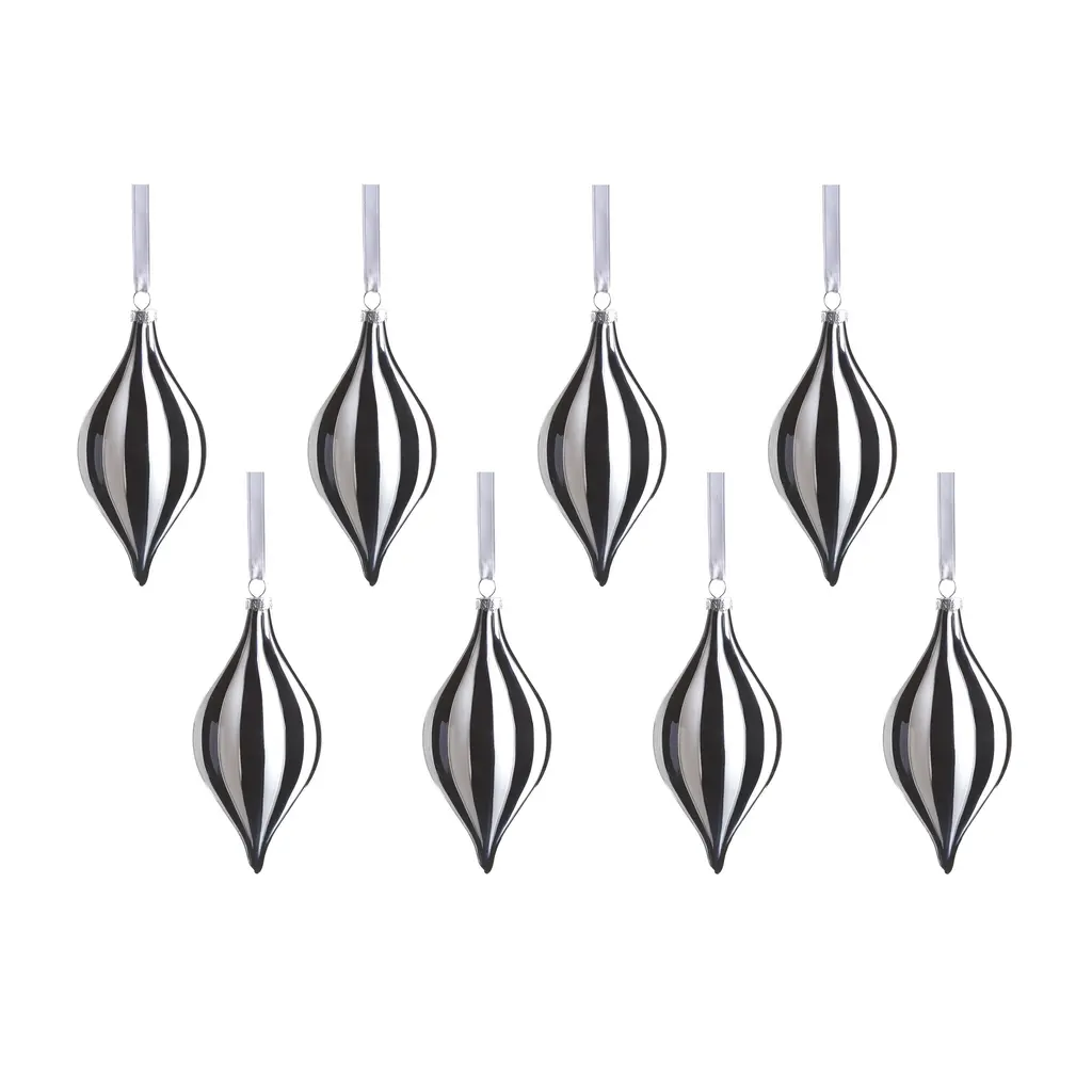 Monochrome Stripe 8-Piece Glass Ornament Set, 2.75" X 5.75" - Glass - Multi