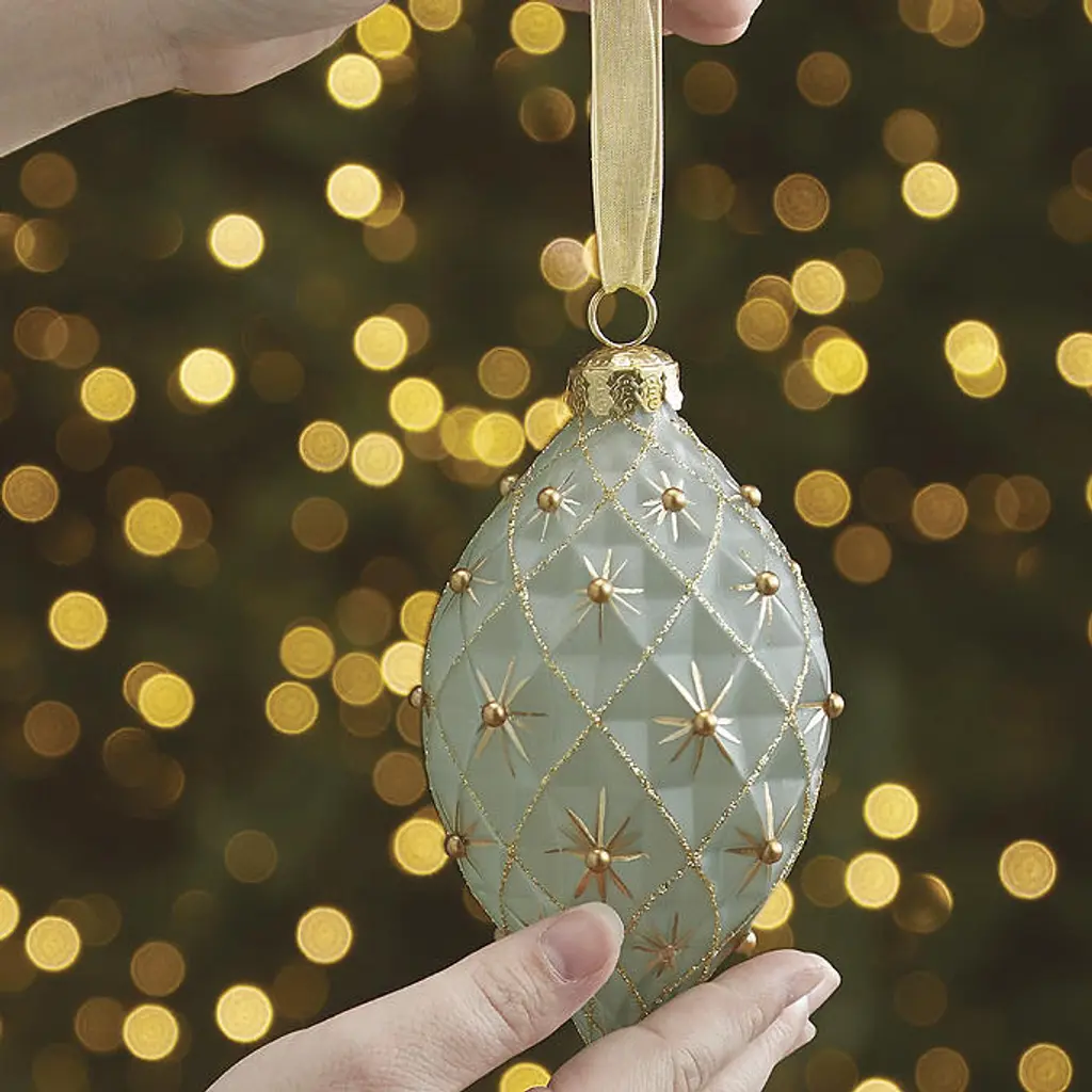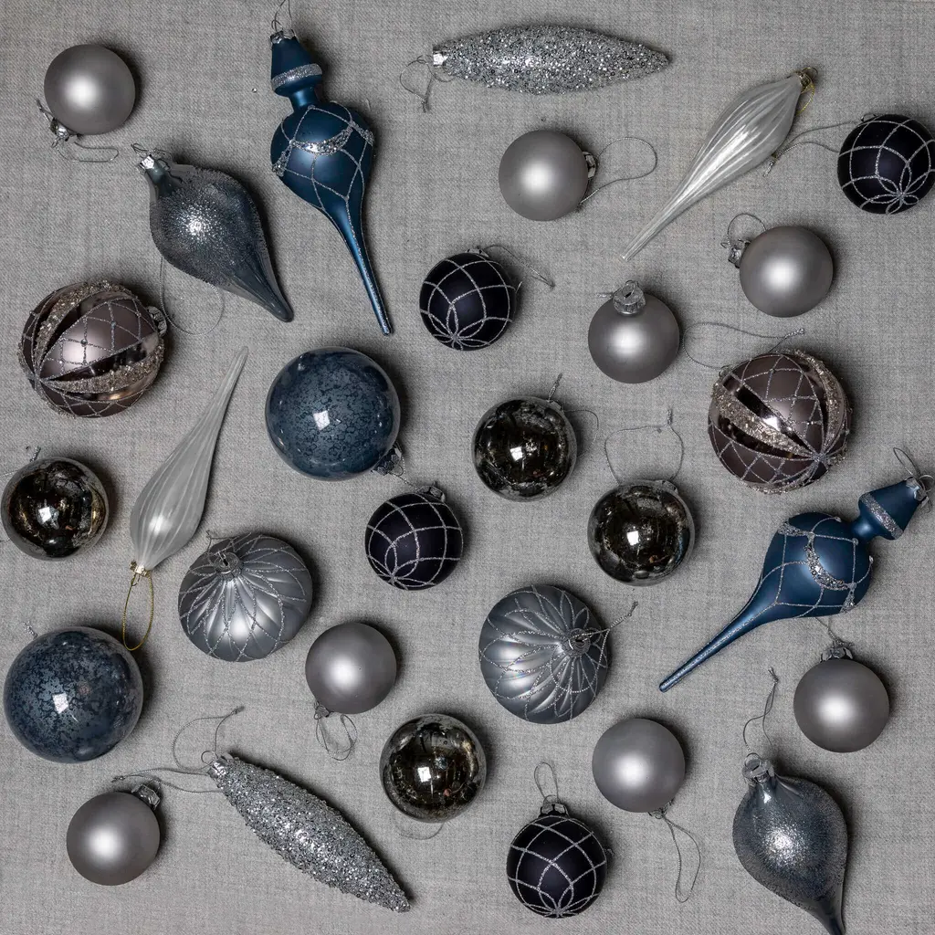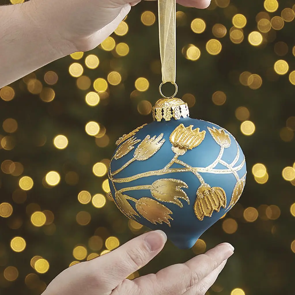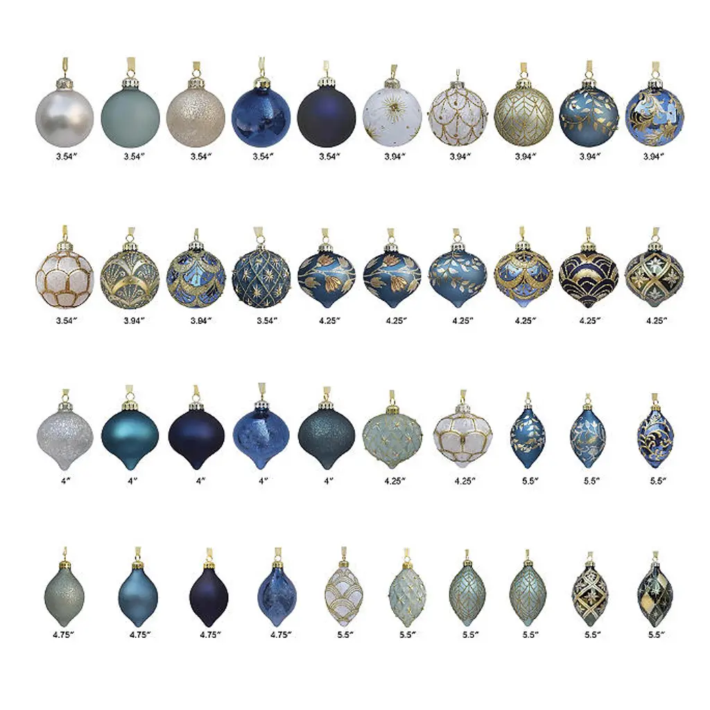 Bring layers of opulence to your tree with our beautifully curated collection of glass ornaments, richly embellished by hand. Varied blue hues provide an eye-catching backdrop for floral, sunburst, fan and star motifs created from beads, rhinestones and glitter. The faceted and swirled finishes add to the intrigue. Painted and embellished by hand 40-piece and six-piece sets 40-piece set includes ball, onion and teardrop shapes Each ornament is topped with a metal cap and ribbon for hanging Ornament length does not include ribbon; ribbon is 3"—3-1/2"L For indoor use Store in original packaging or Ornament Storage Box (sold separately) Imported A Frontgate exclusive. At Frontgate, our primary focus is quality. We guarantee that every product we sell will stand up to the supreme test – our customers' satisfaction. To learn more about our policies, visit our Shipping & Processing, Returns & Exchanges and Warranty & Price Guarantee pages. Bring layers of opulence to your tree with our beautifully curated collection of glass ornaments, richly embellished by hand. Varied blue hues provide an eye-catching backdrop for floral, sunburst, fan and star motifs created from beads, rhinestones and glitter. The faceted and swirled finishes add to the intrigue. Painted and embellished by hand 40-piece and six-piece sets 40-piece set includes ball, onion and teardrop shapes Each ornament is topped with a metal cap and ribbon for hanging Ornament length does not include ribbon; ribbon is 3"—3-1/2"L For indoor use Store in original packaging or Ornament Storage Box (sold separately) Imported A Frontgate exclusive. At Frontgate, our primary focus is quality. We guarantee that every product we sell will stand up to the supreme test – our customers' satisfaction. To learn more about our policies, visit our Shipping & Processing, Returns & Exchanges and Warranty & Price Guarantee pages.