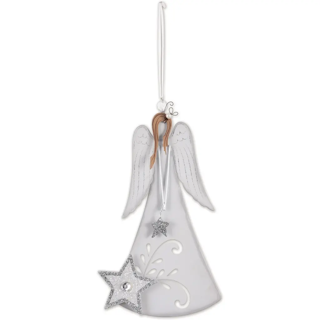 Gather around the Christmas tree and enjoy the spirit of the holiday with this solid pewter ornament. Shaped like an angel with intricate, etched details, this beautifully made piece the perfect addition to any home. This ornament is great for anyone who loves celebrating the festive season. Use this piece as a present topper or give it as a gift to make someone smile.