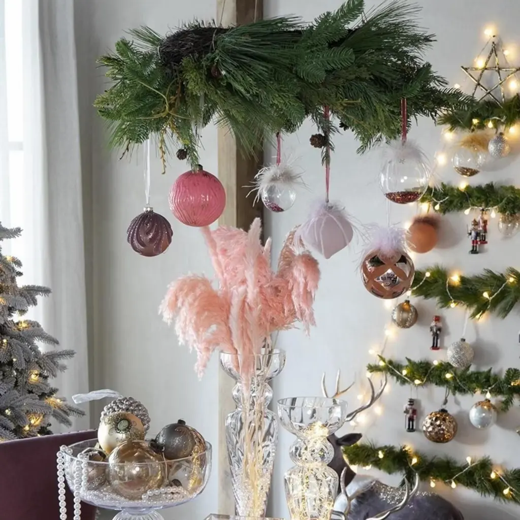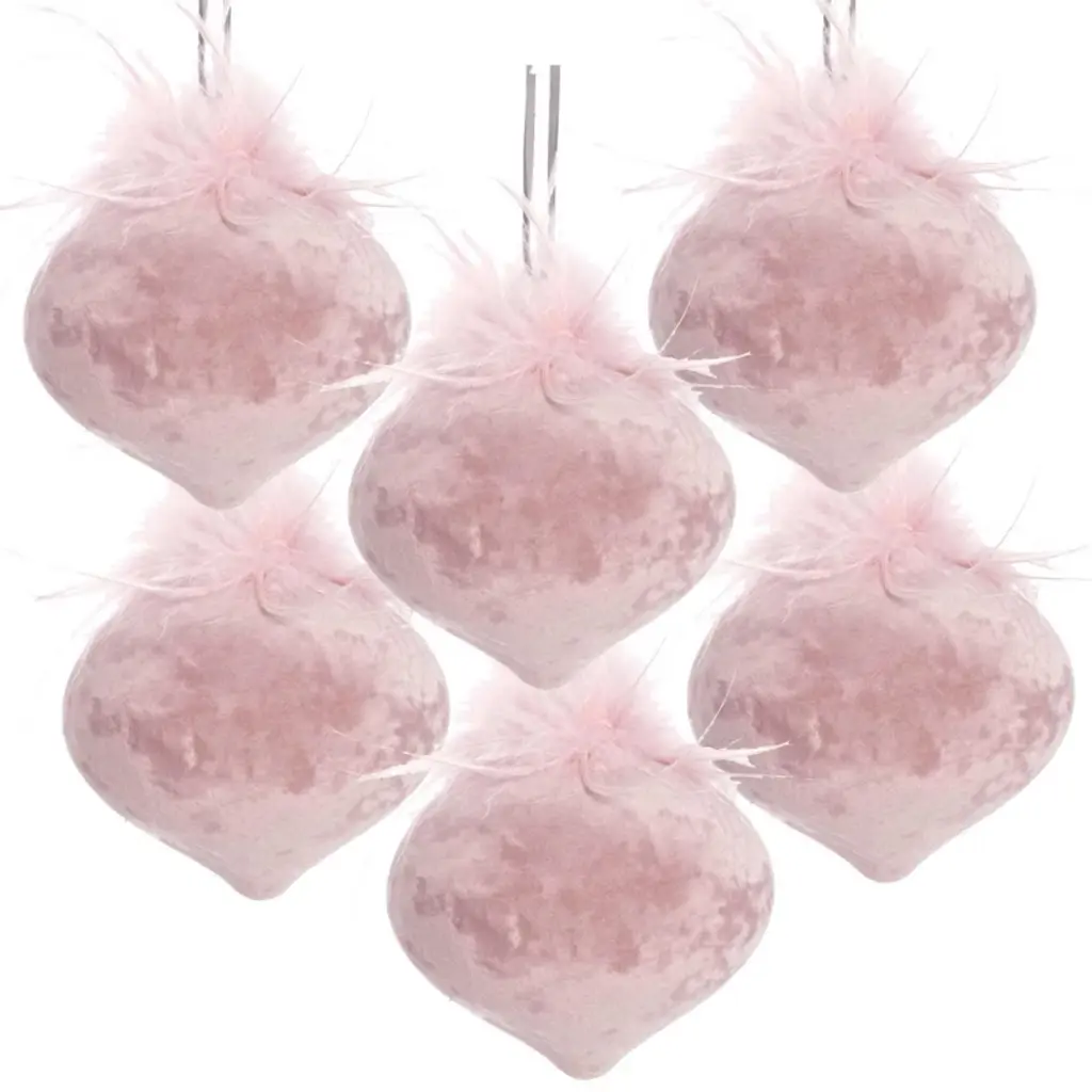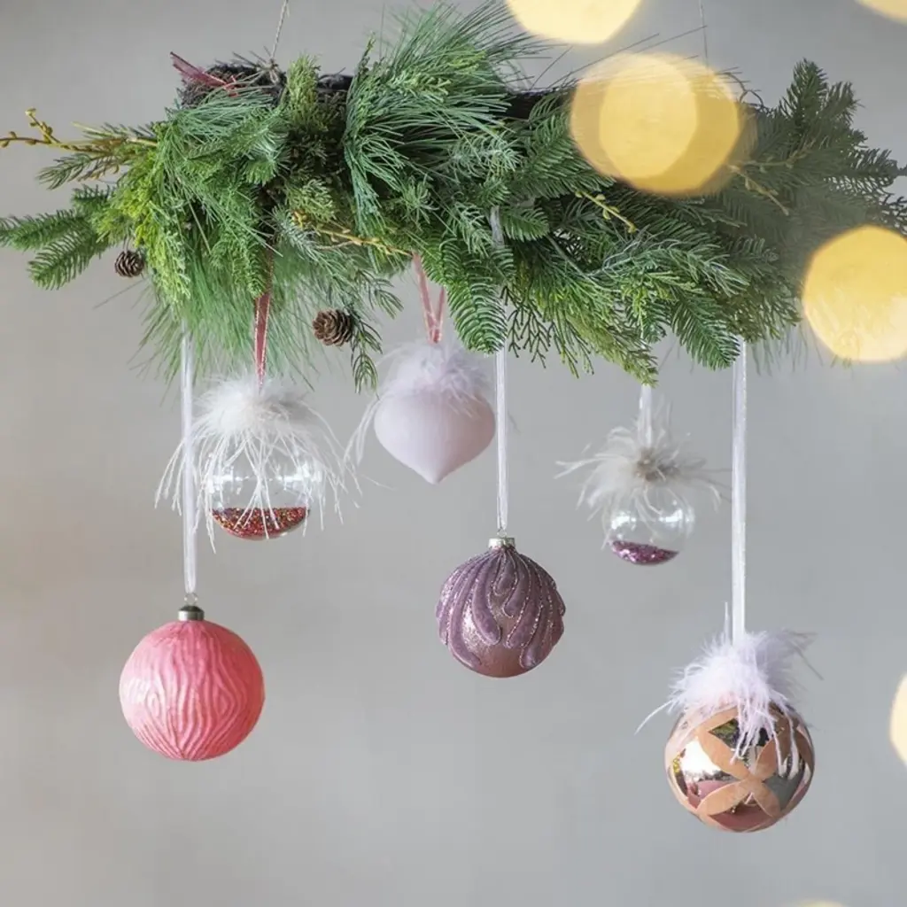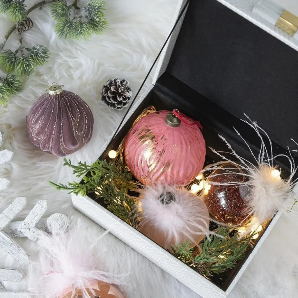 Naysaye Party Decoration And Accessories Glass Christmas Ball Ornaments Set Of 6 For Christmas Tree Decorations, Pink, 3.9"*3.9"*3.9"
