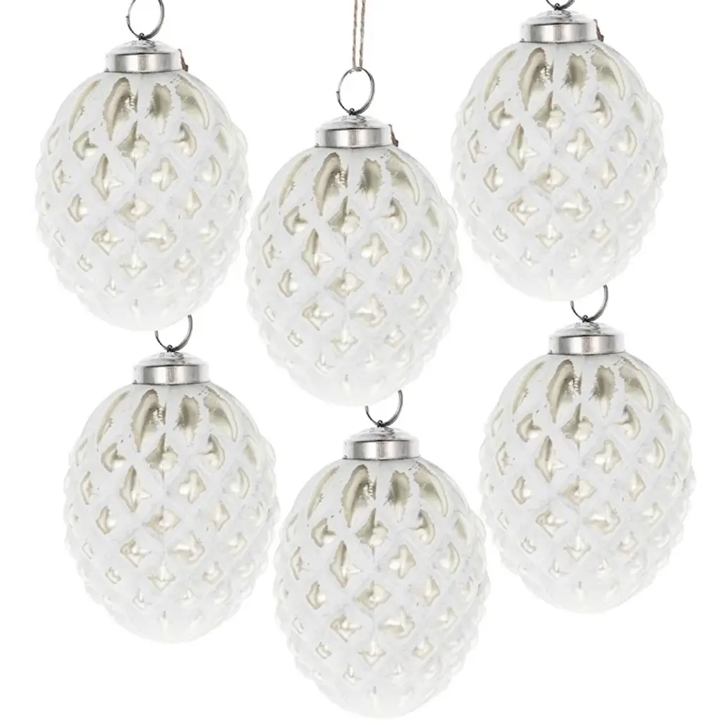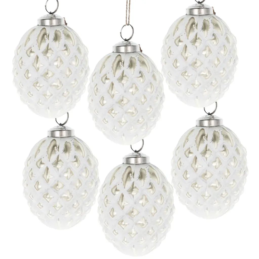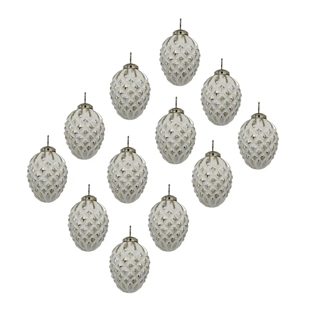 Naysaye Party Decoration And Accessories Set Of 12 Glass Christmas Ball Hanging Ornament For Holiday Celebration, White, 4.2"*4.2"*4.2"