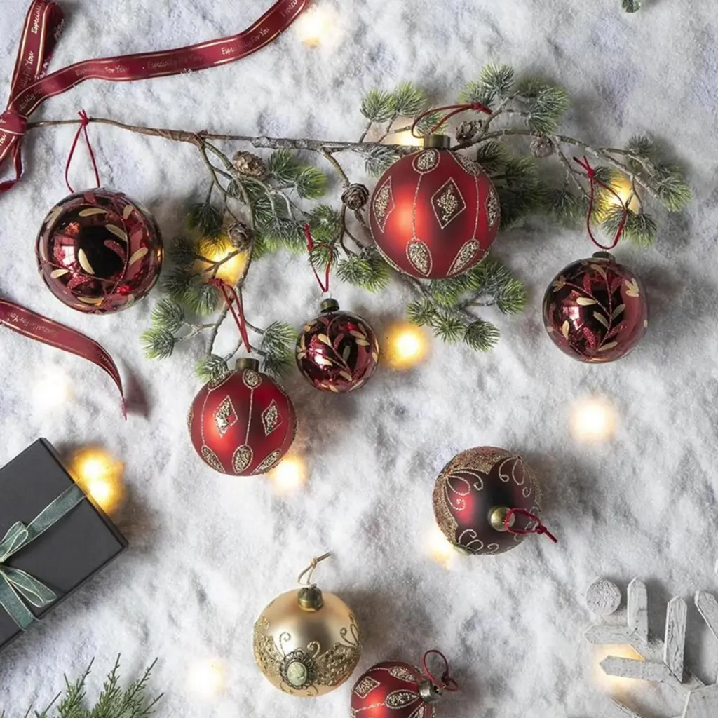 Bring festive elegance to your home with the NAYSAYE Glass Christmas Ball Ornament Set. Designed with intricate red glass craftsmanship, these ornaments add a refined touch to your holiday decor. The shimmering finish creates a dazzling display on your Christmas tree, brightening the festive atmosphere. Perfect for both tree and party settings, this set combines modern and classic styles, ensuring lasting beauty and becoming a cherished part of your seasonal decorations.