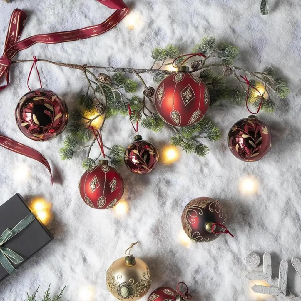 Bring festive elegance to your home with the NAYSAYE Glass Christmas Ball Ornament Set. Designed with intricate red glass craftsmanship, these ornaments add a refined touch to your holiday decor. The shimmering finish creates a dazzling display on your Christmas tree, brightening the festive atmosphere. Perfect for both tree and party settings, this set combines modern and classic styles, ensuring lasting beauty and becoming a cherished part of your seasonal decorations.