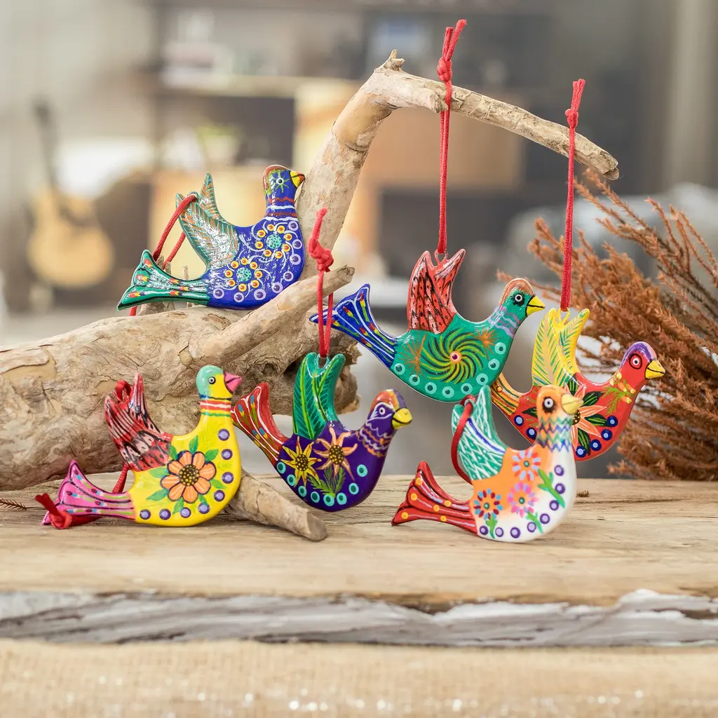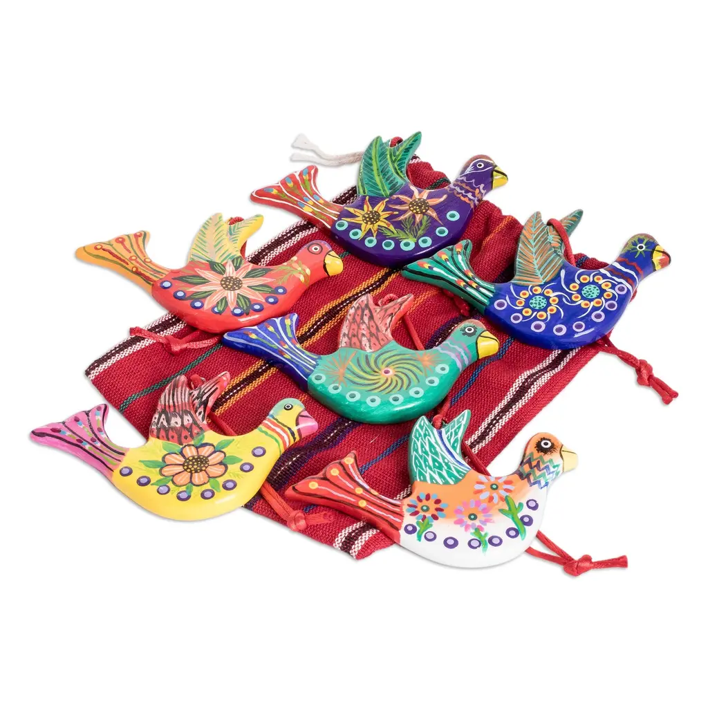 Novica Handmade Festive Doves Ceramic Ornaments (Set Of 6) - Multi