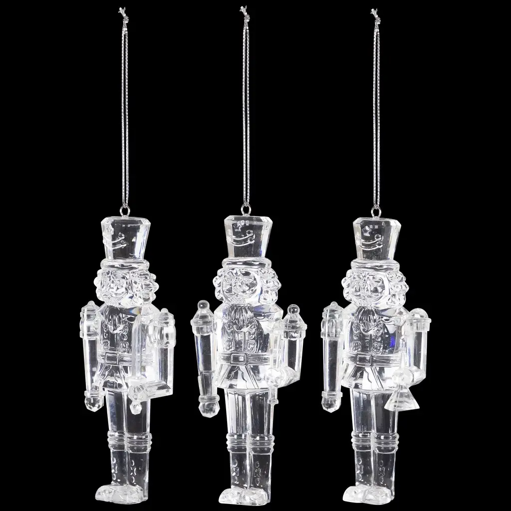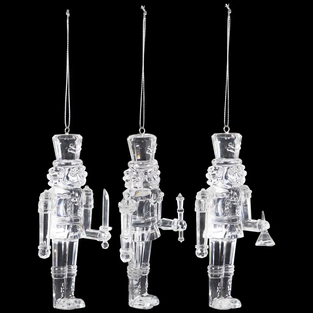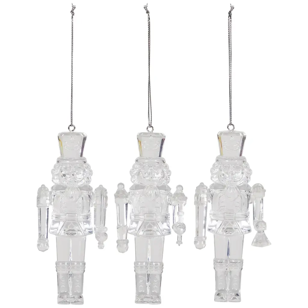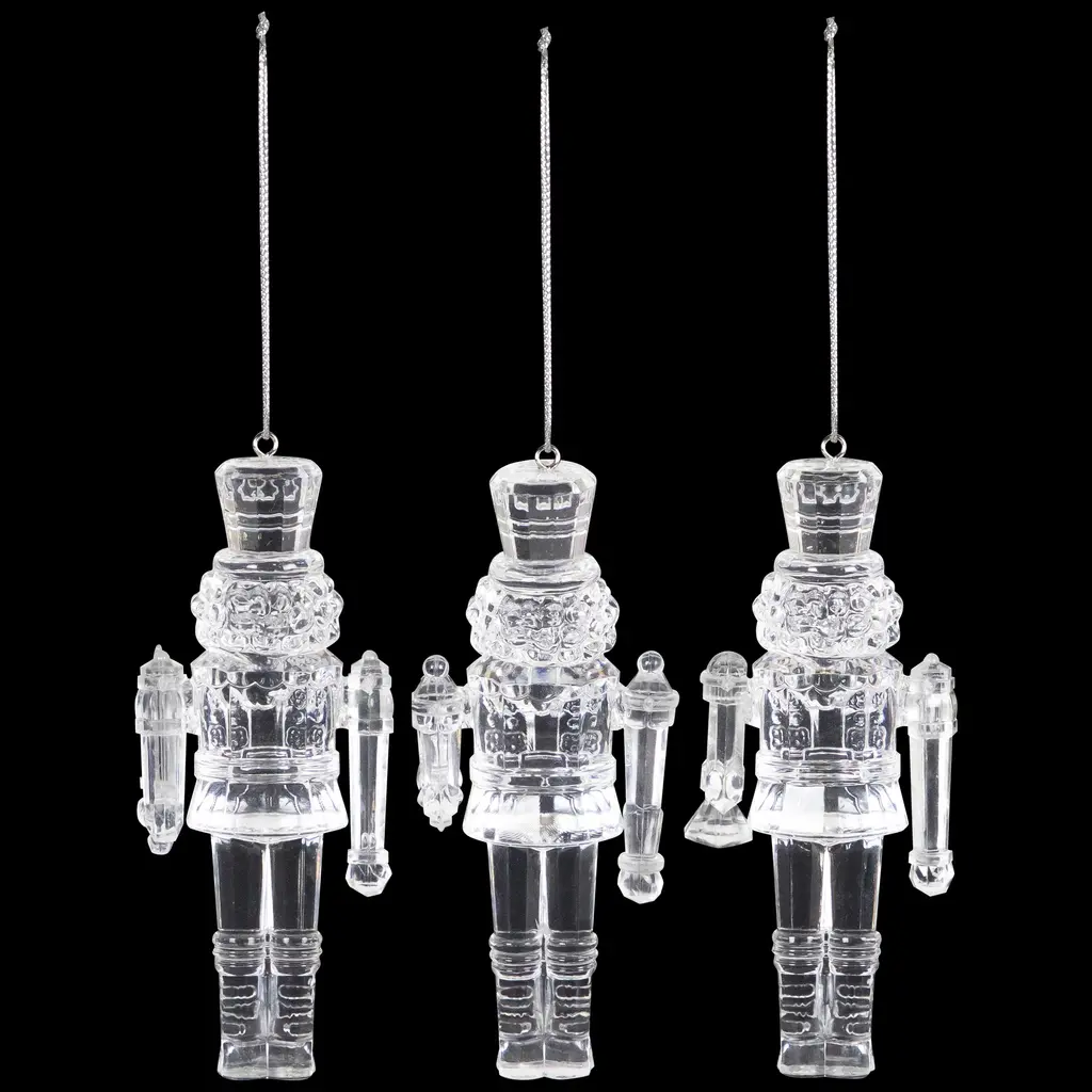 Nutcracker Soldier Acrylic Christmas Ornaments - 5" - Clear - Set Of 3 - Plastic - Clear