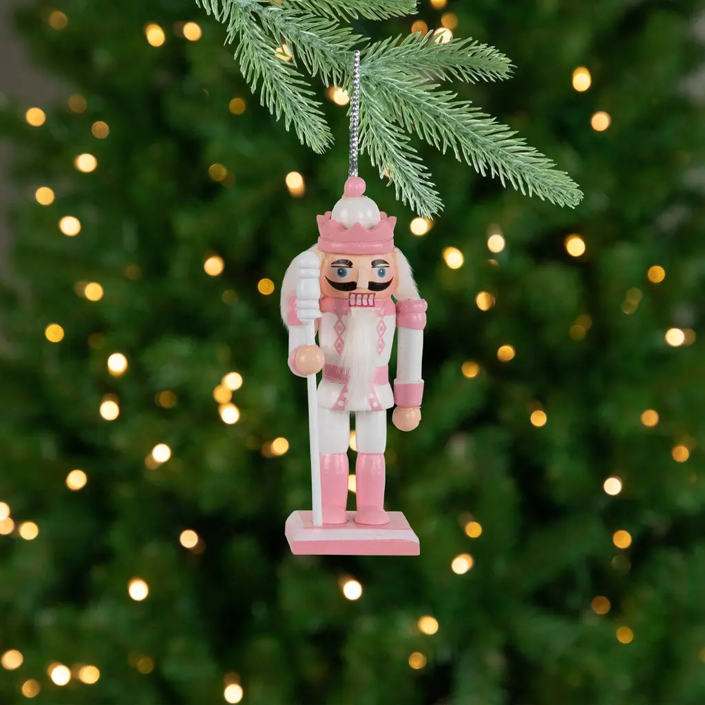 Deck the halls with these charming Nutcracker Christmas Ornaments! This delightful set includes six fully dimensional ornaments in beautiful shades of pink and white. These ornaments feature six unique designs, all dressed in soldier uniforms. Hang them from their silver cords and add a touch of traditional charm to your holiday decor. Perfect for adorning your Christmas tree or even as a festive addition to wreaths or garlands, these Nutcracker Soldier ornaments are sure to bring joy and whimsy to your seasonal celebrations. Product Features: Set of 6 Nutcracker Christmas ornaments Pink and white nutcrackers in soldier uniforms Each holds an instrument, a weapon, or a scepter Fully dimensional ornaments Come ready-to-hang on silver cords The perfect addition to Nutcracker collections Sturdy square base to display on a flat surface Recommended for indoor use only Dimensions: 3.25"H x 1.5"W x 1.25”D Material(s): MDF (medium density fiberboard)