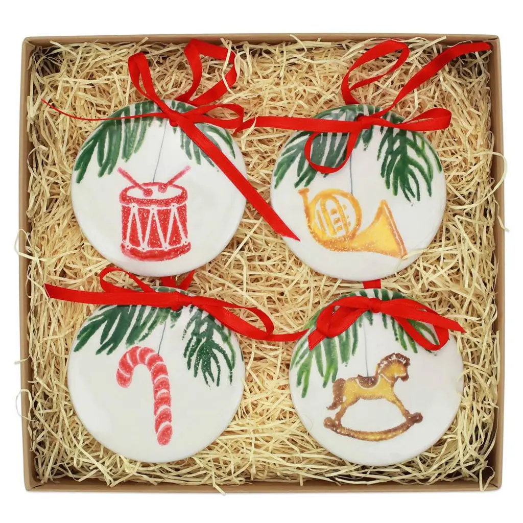 Trim your Christmas tree in style with our Nutcrackers Modern Multicolor Earthenware Decorative Ornaments. Crafted from earthenware clay, these festive ornaments are hand-painted, making each and every one totally unique. This set of designer tree ornaments makes for a sweet addition to any home's holiday decor, and it makes a lovely gift as well.