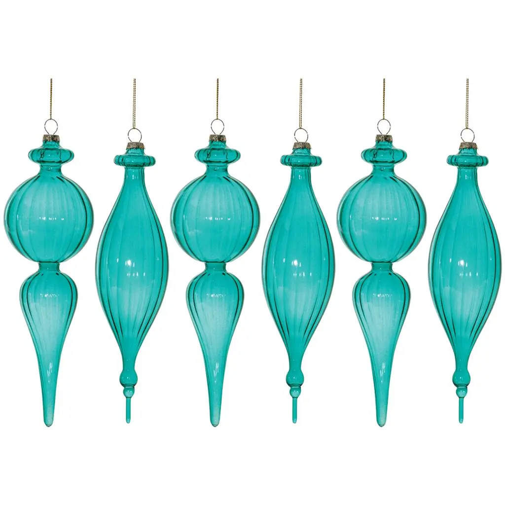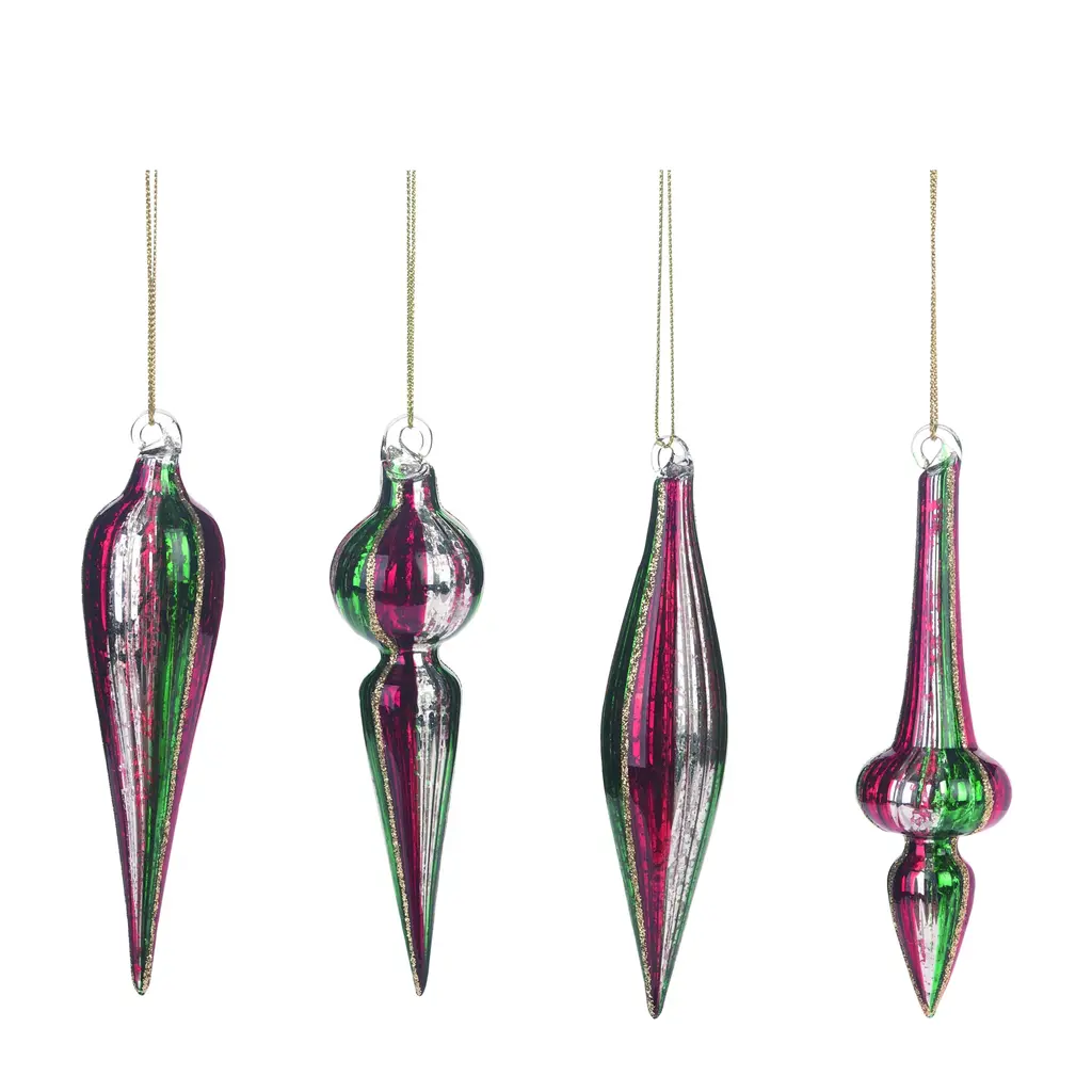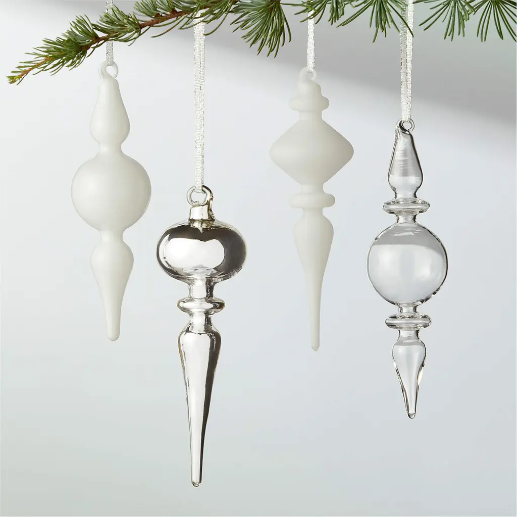 Optic White Glass Teardrop Christmas Tree Ornaments Set of 4