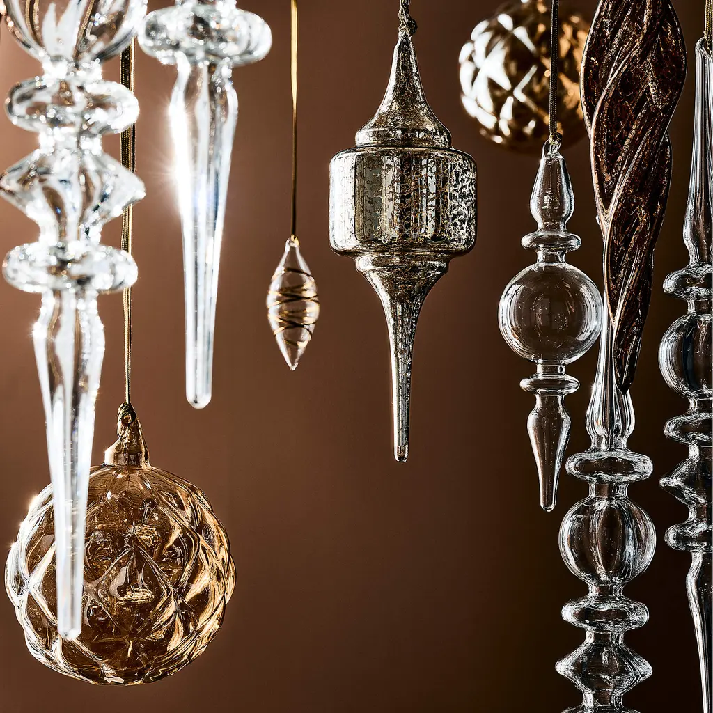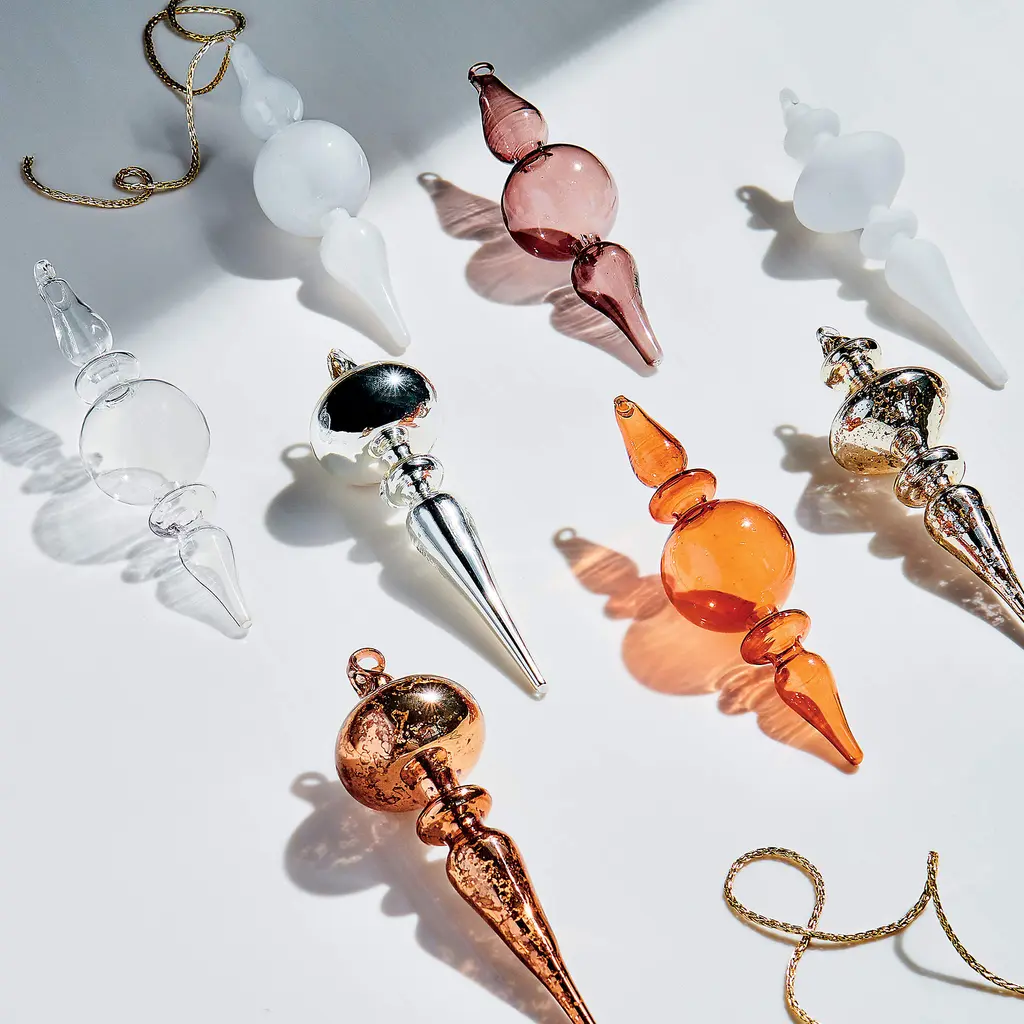 Reminiscent of vintage treasures handed down through the generations, the white teardrop ornaments introduce a refreshing visual palette to tradition. The two different spherical glass forms hang from the Christmas tree in four elegant tones: matte white, silver, polished white and clear. CB2 exclusive.