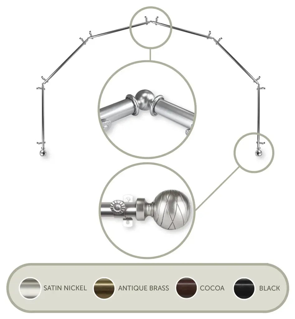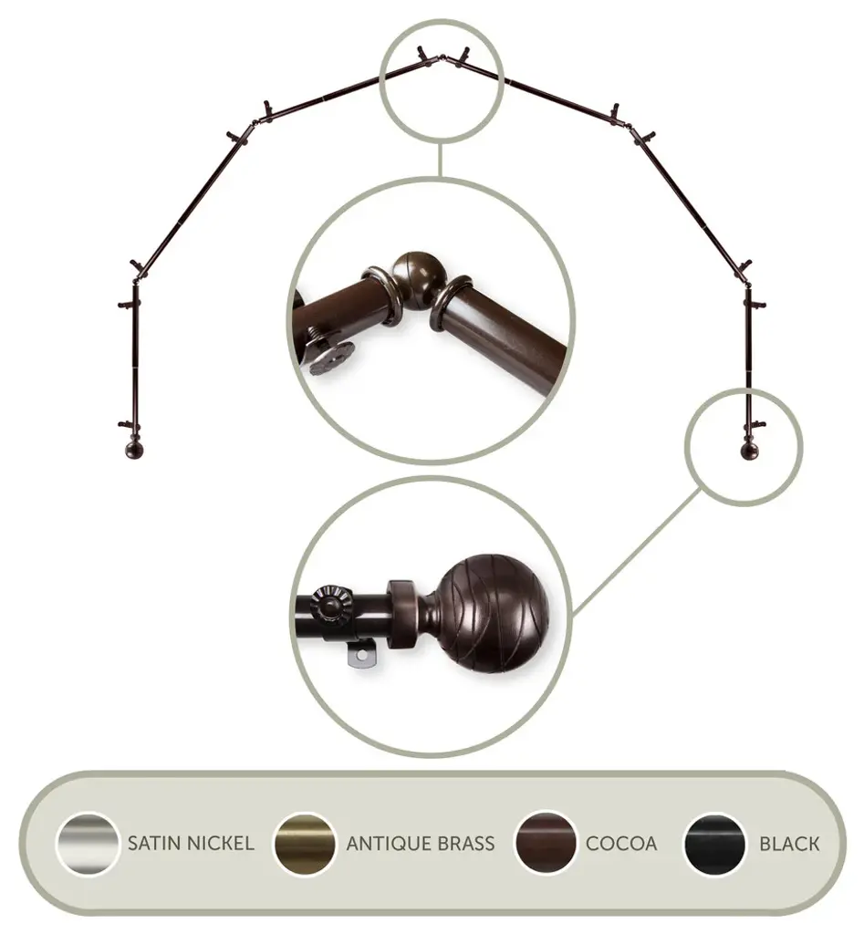 Ornament Bay Window Curtain Rod, 20"-36", 38"-72", Black