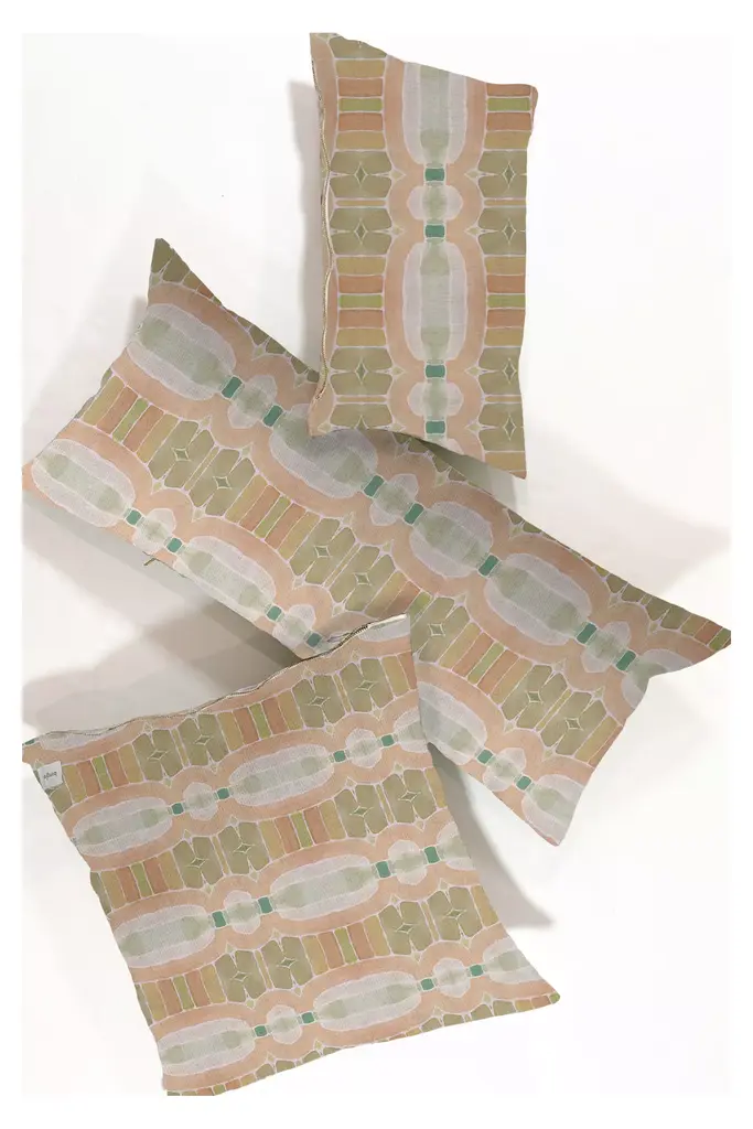 A contemporary reinterpretation of opulent damask patterns, this made-to-order set of six linen cotton voile napkins was originally painted by hand with powder-pink and pistachio tones enlivened by yellow accents. Printed with an eco-friendly water-based technique, their decoration can be reinforced by requesting a coordinated tablecloth or wall covering from the Ornamental Crush Collection.