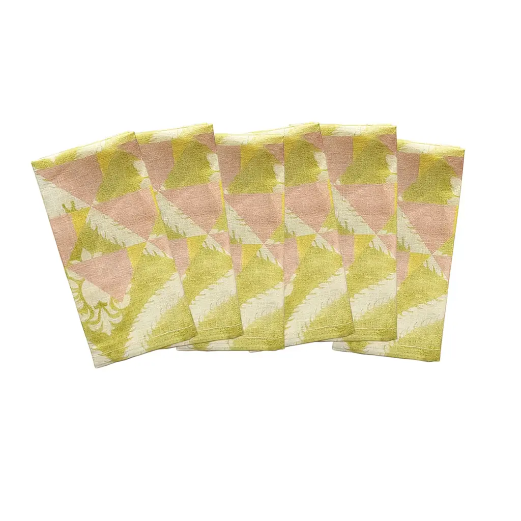 Ornamental Crush Set Of 6 Pistachio & Pink Napkins